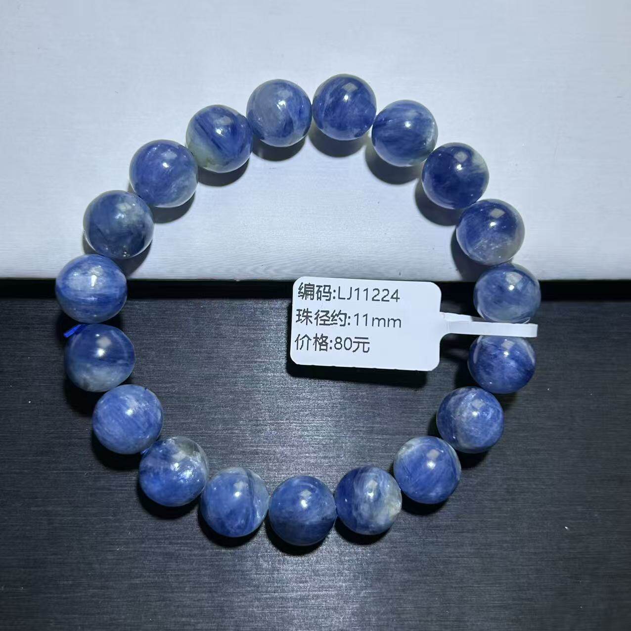 蓝晶石手串蓝色油画风蓝晶大卡百搭蓝绿晶拉丝猫眼手链龙磷蓝晶