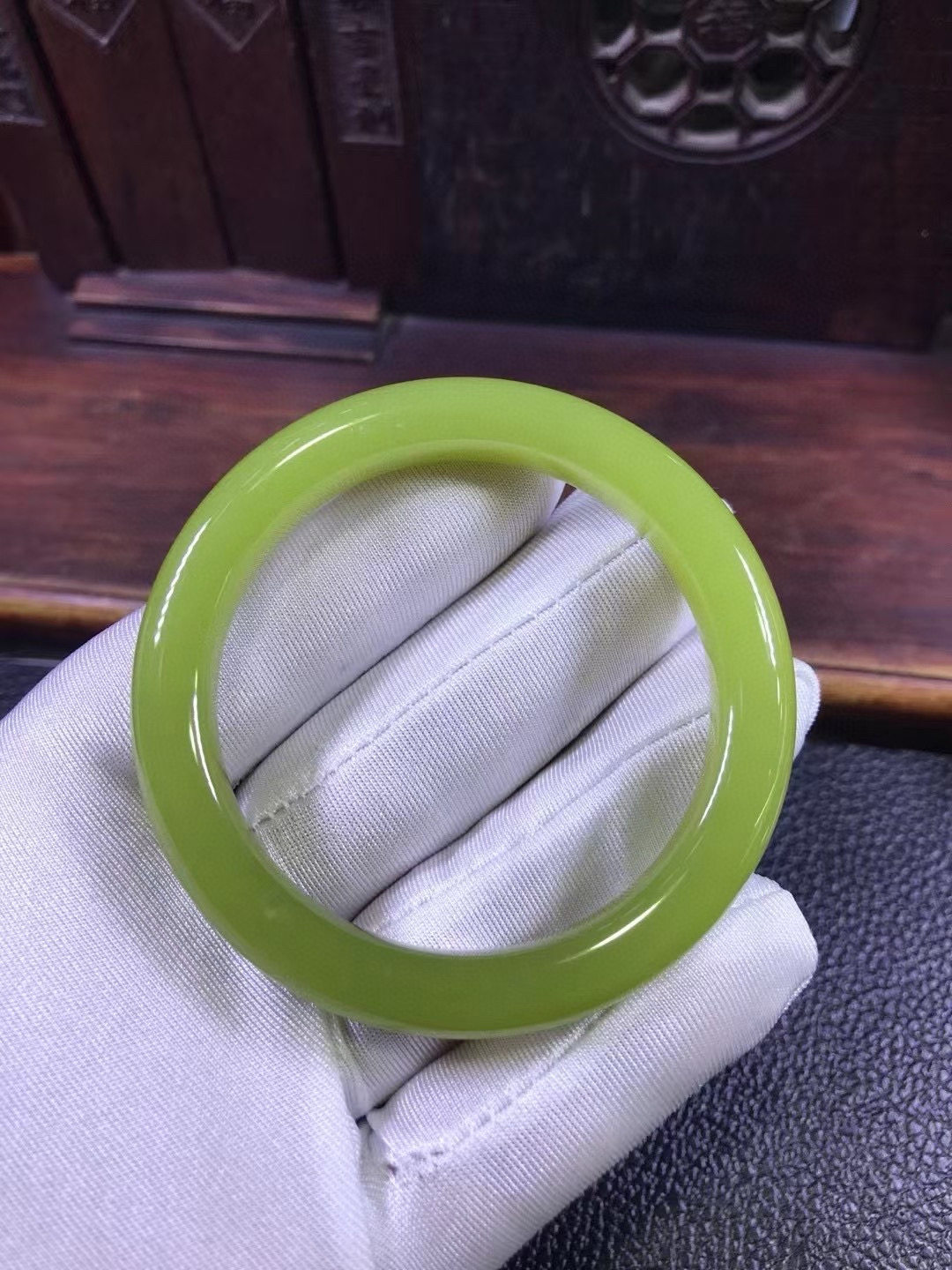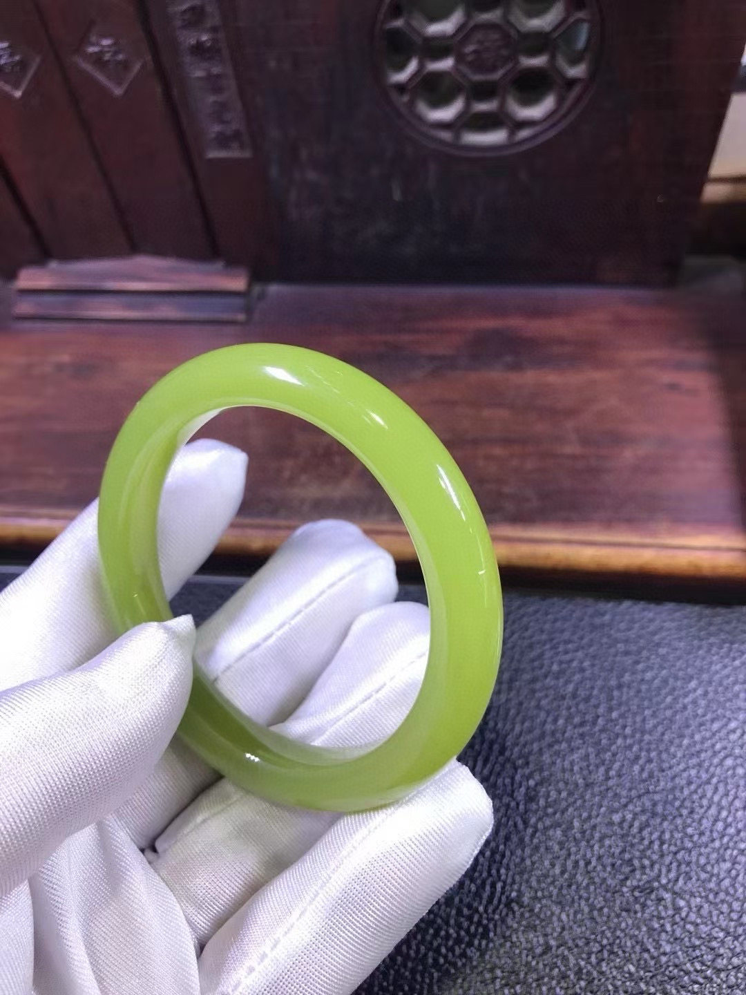 和田玉析木河磨玉椴树林黄绿肉53口手镯40克女士玉镯定制定做正品