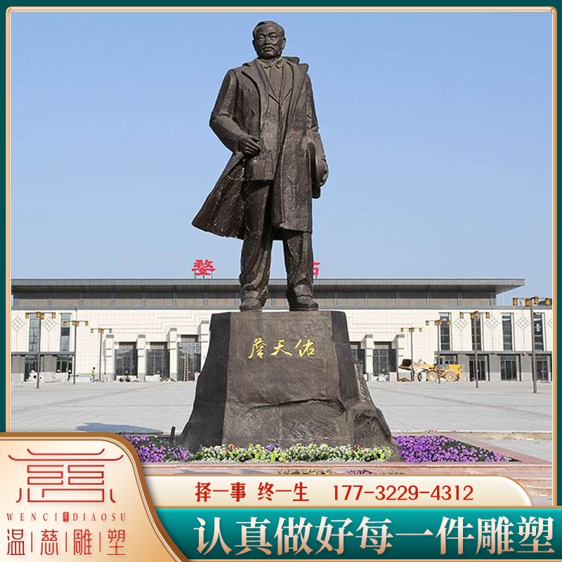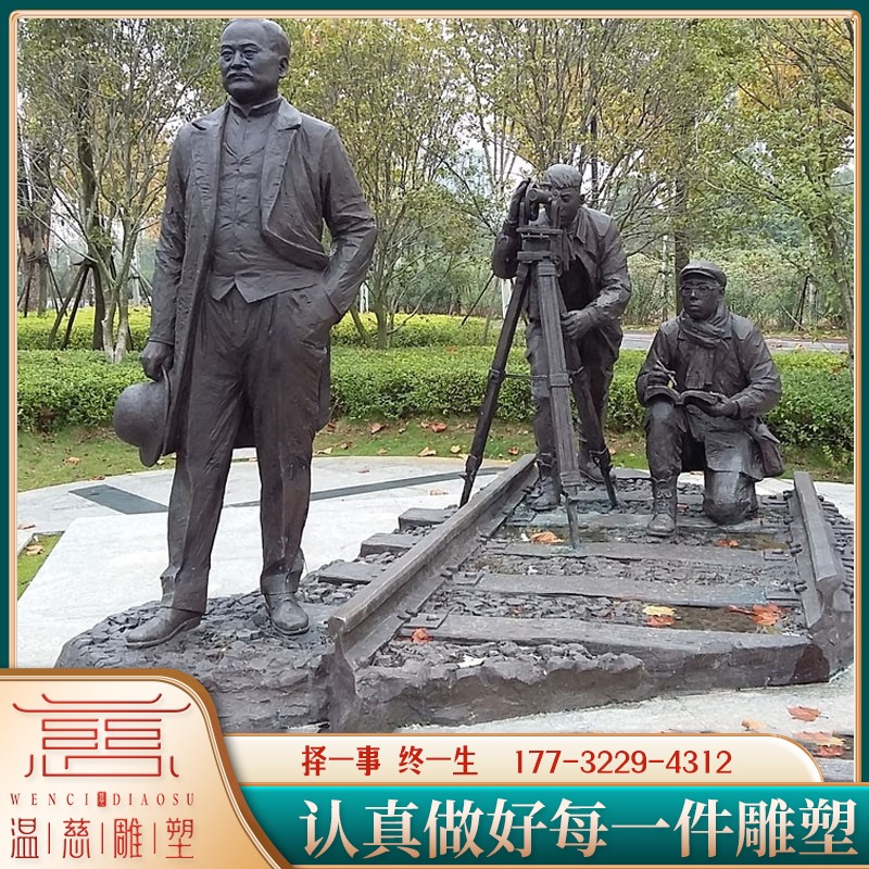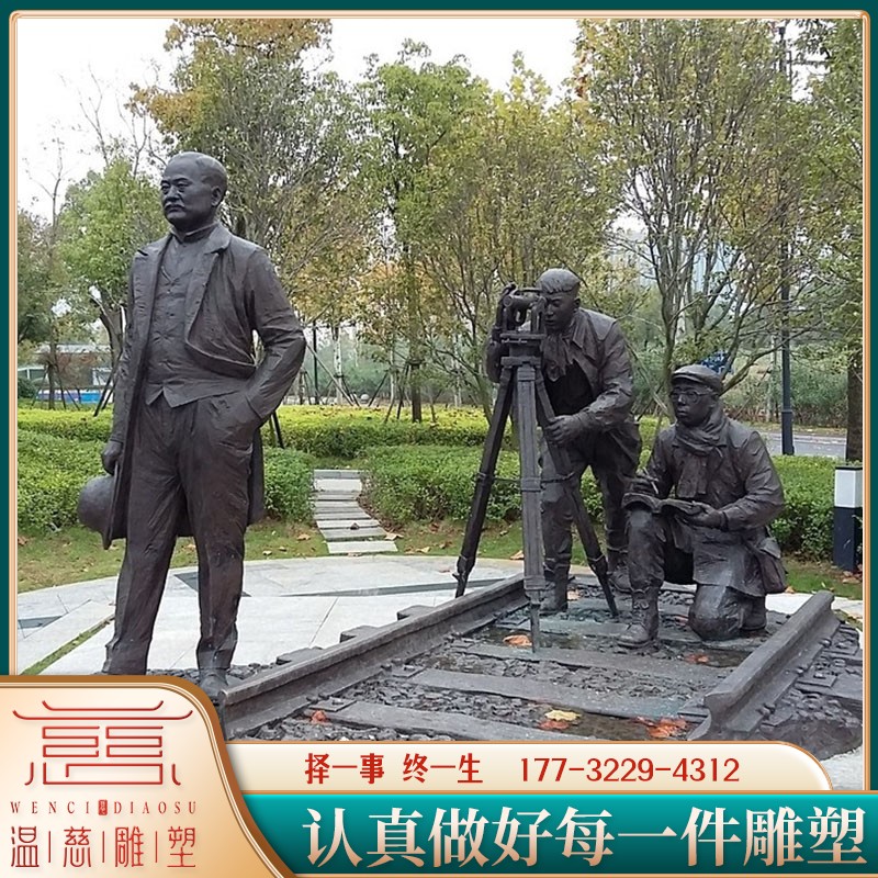定制铸铜詹天佑雕像历史名人铁路工程主题玻璃钢铁路工人景观雕塑