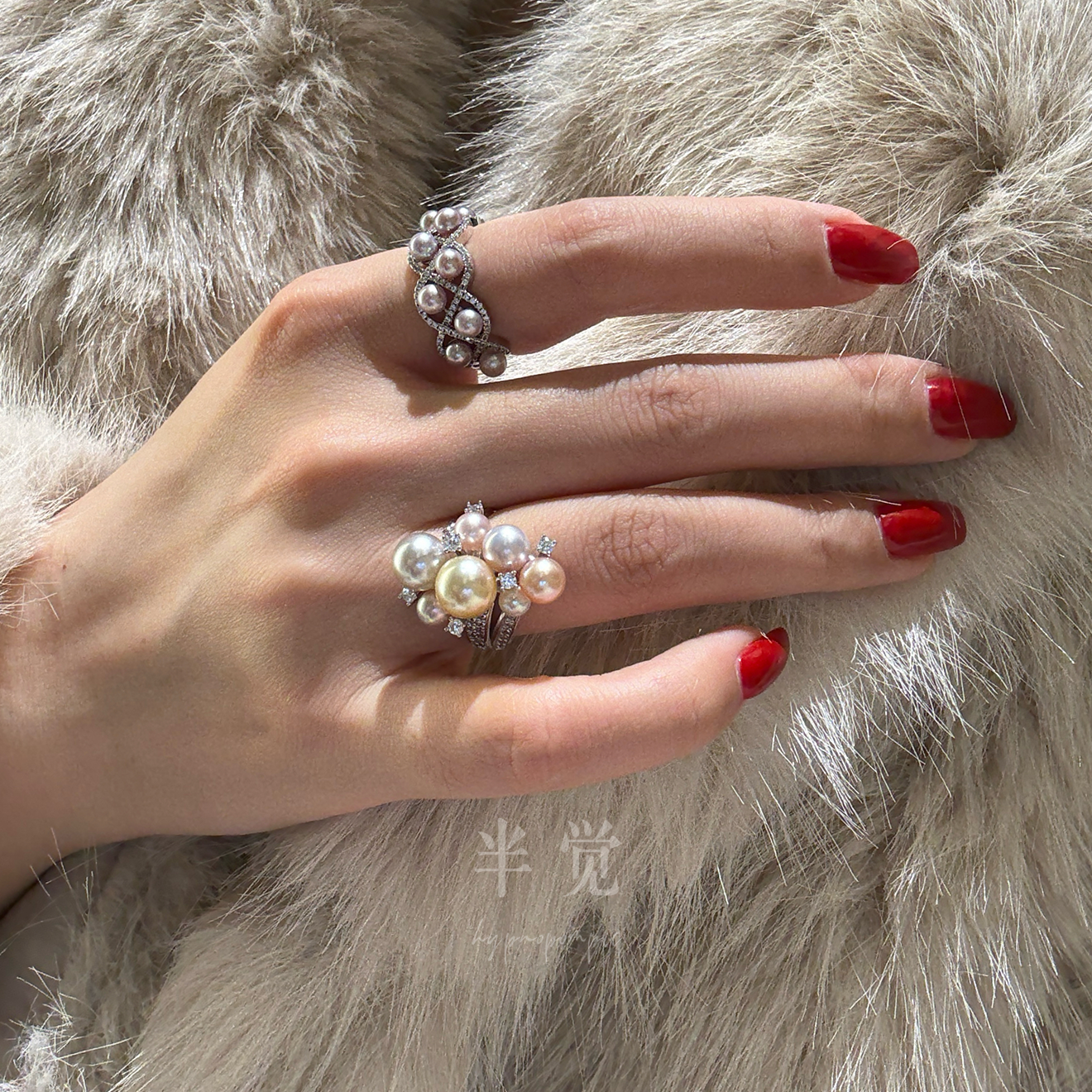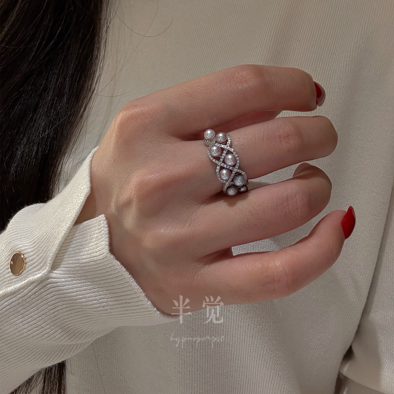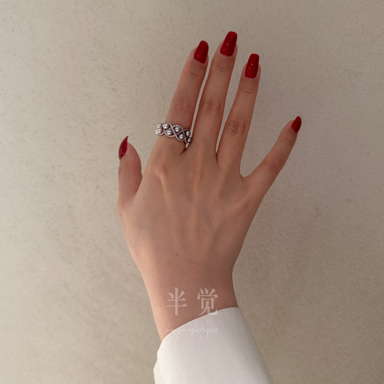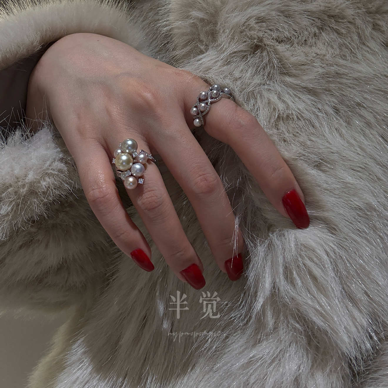 半觉极光珍珠蕾丝开口戒指女款小众设计轻奢高级感戒指礼物可开票