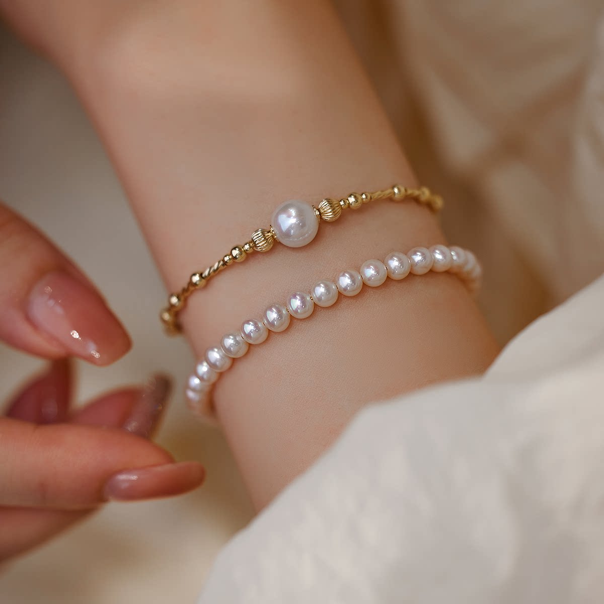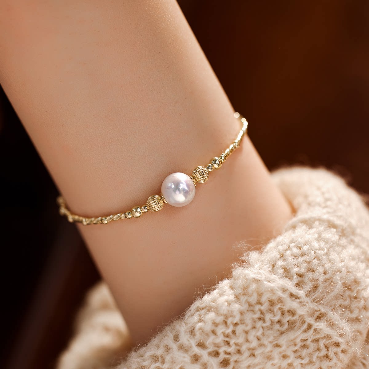 赛赛莉安轻奢气质转运珠光泽感天然珍珠14K包金手链高级小众设计