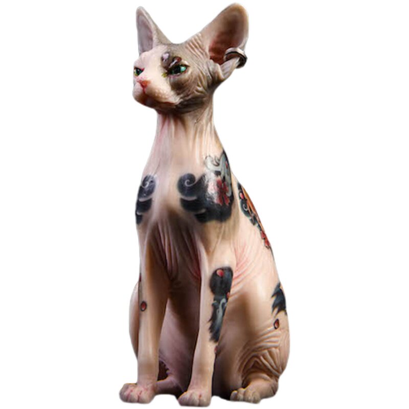 JXK 纹身版斯芬克斯无毛猫高端模型摆件仿真猫咪树脂小动物饰品猫