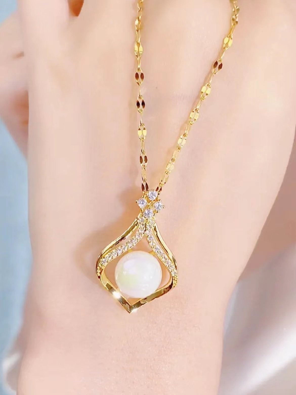 夏季新款气质优雅珍珠项链女高级感轻奢钛钢吊坠冷淡风锁骨链颈链