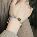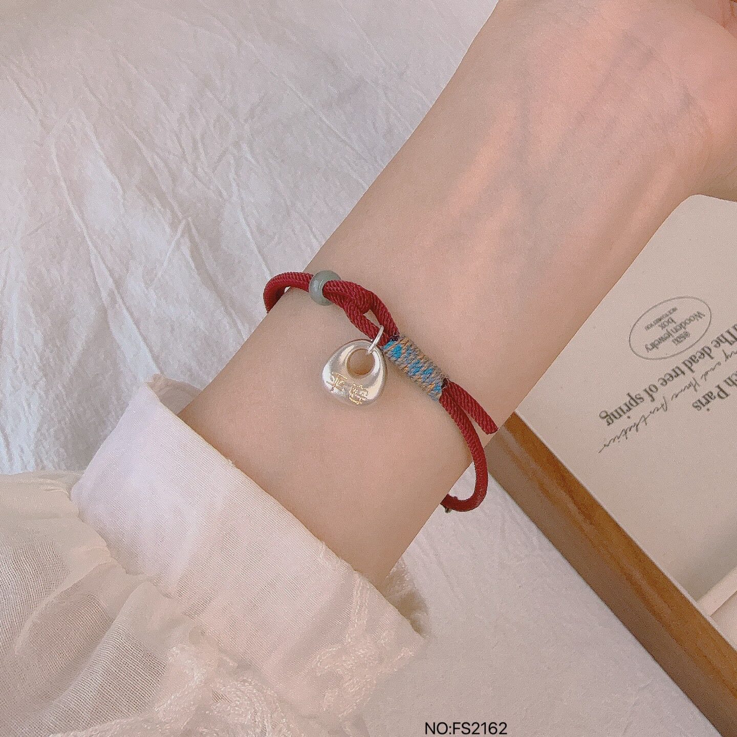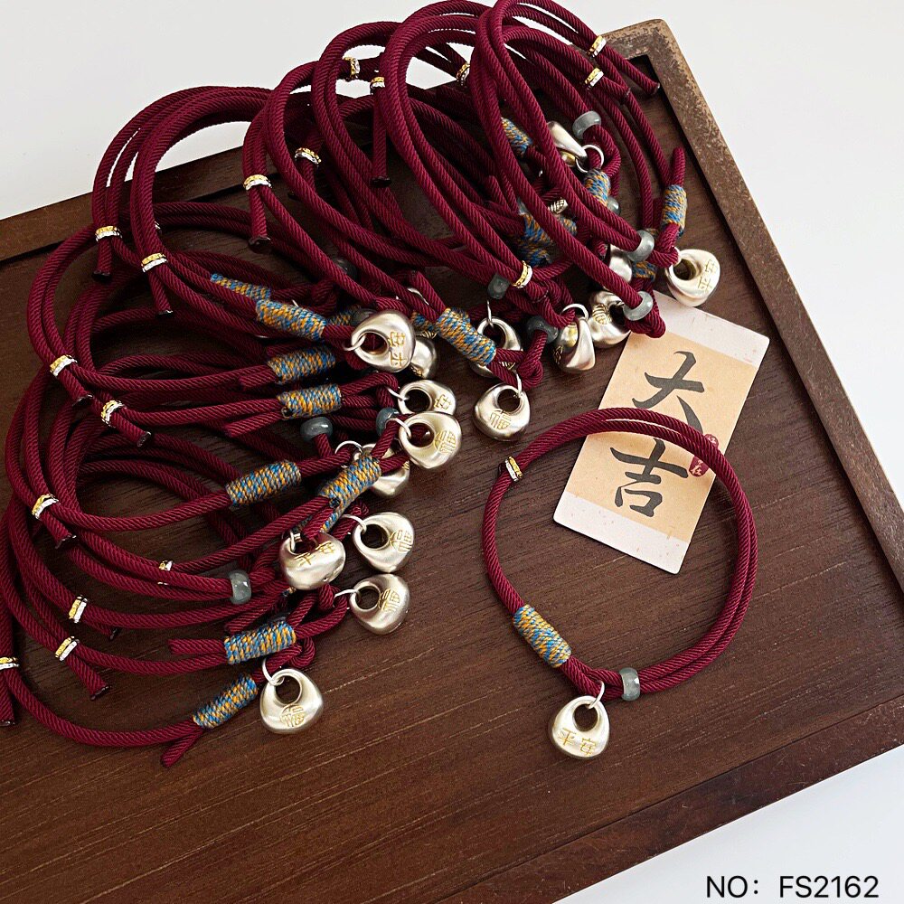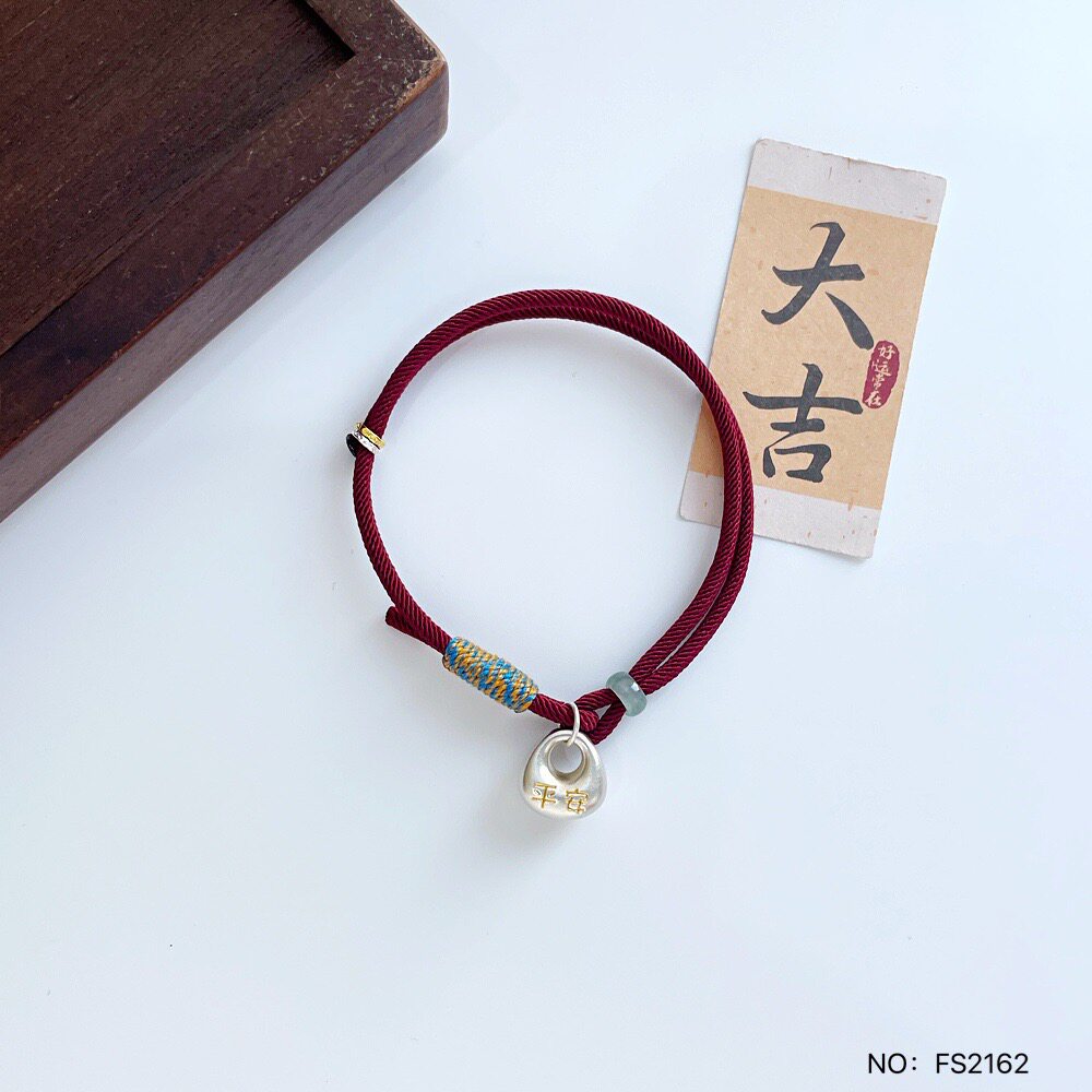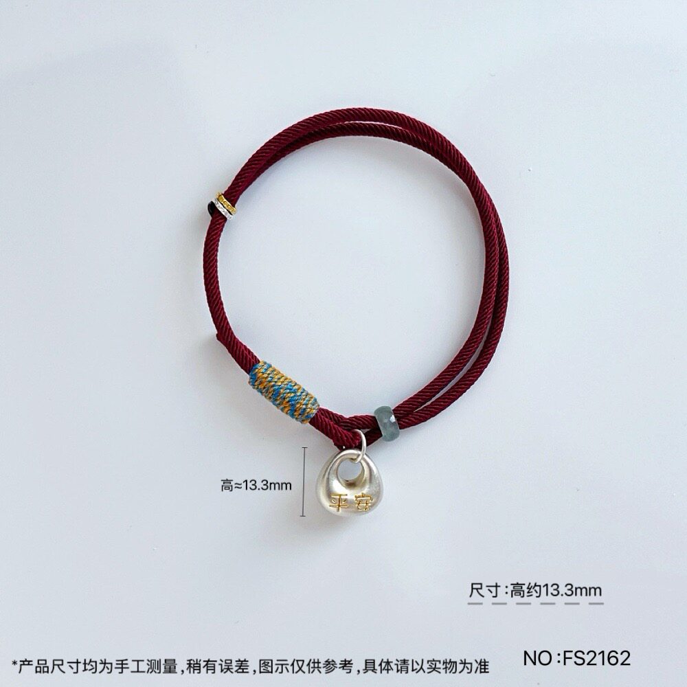 999足银手链女翡翠描金平安福秤砣纯银999藏式调节编织手绳女礼物