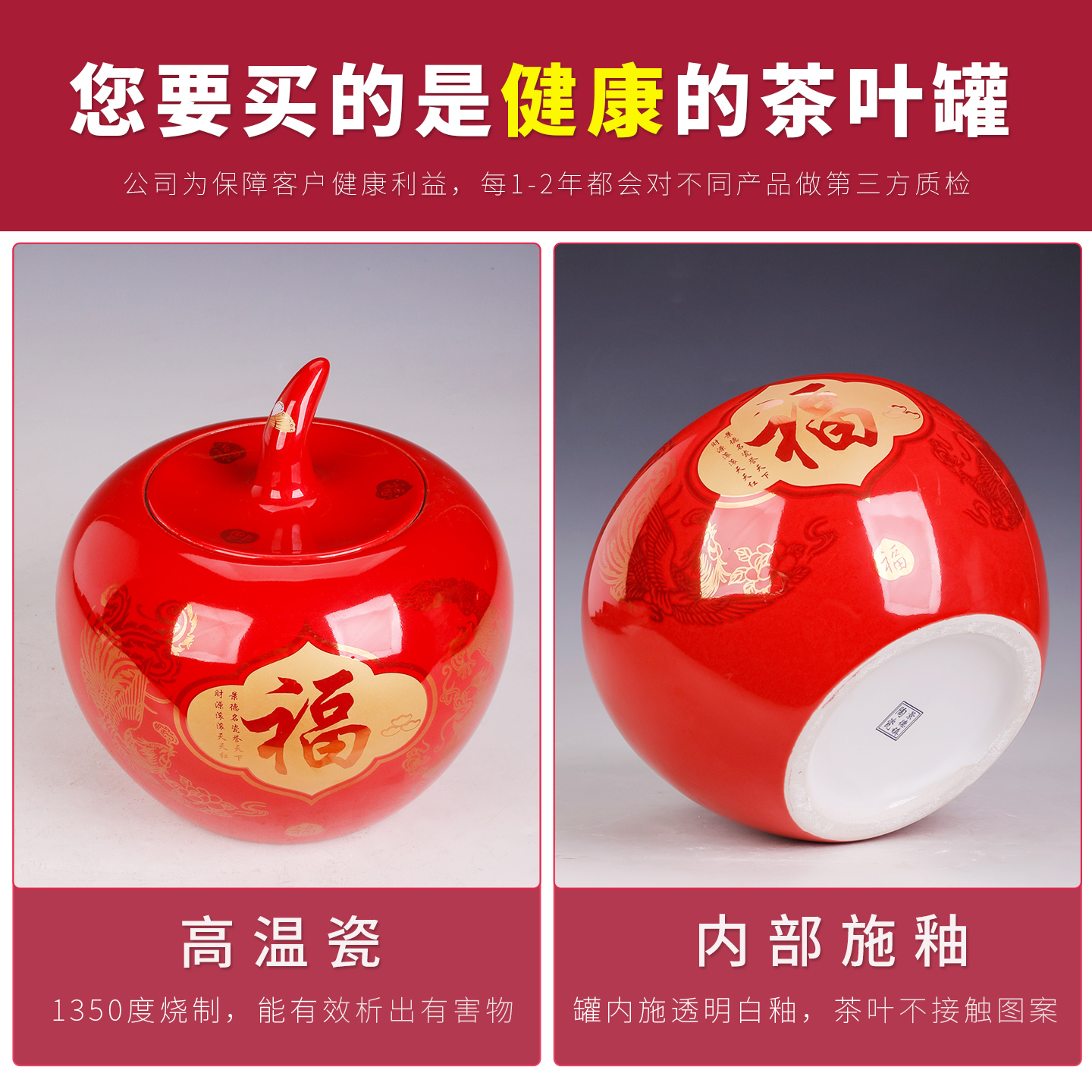 景德镇陶瓷结婚糖果罐红色苹果摆件客厅电视柜装饰带盖储物罐大号