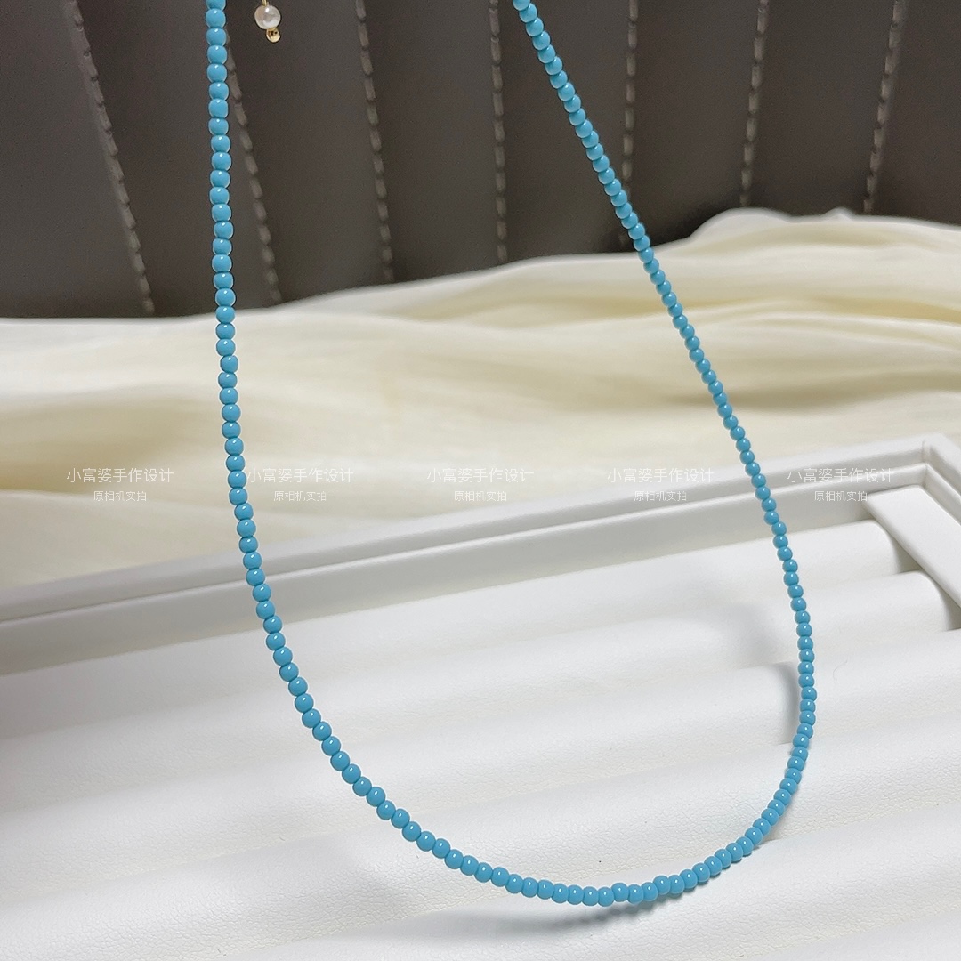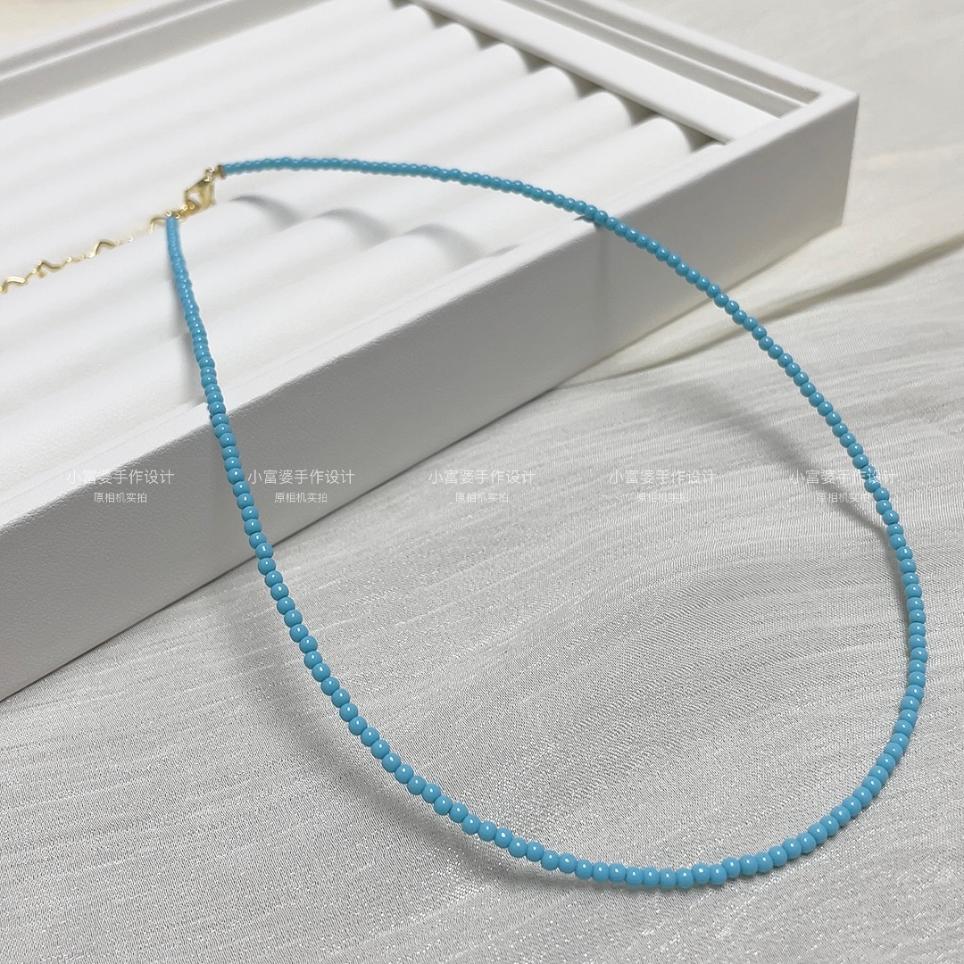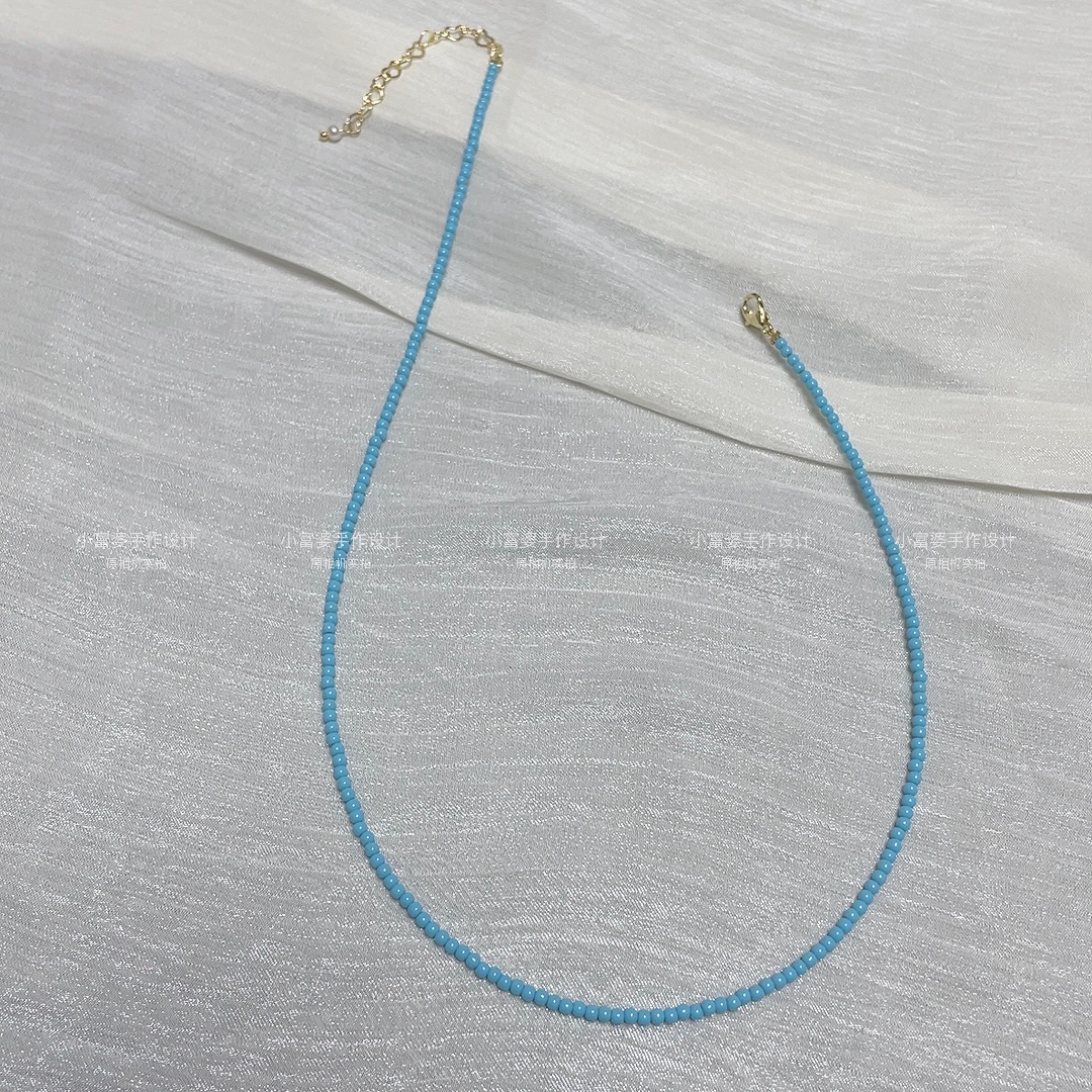 925银蓝松石色小米珠项链极细蓝绿色锁骨链简约气质女颈链素链