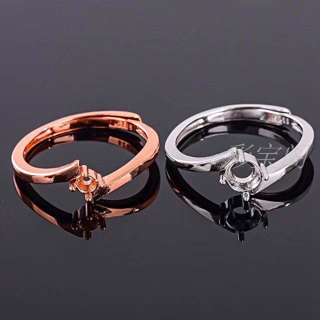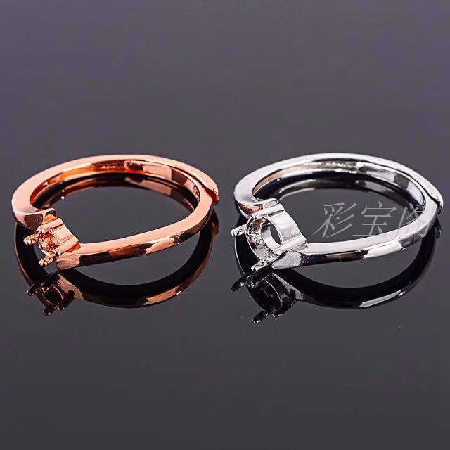 s925银活口戒指空托 3*3 4*4 5*5多尺寸圆形简约秀气戒托 代镶嵌