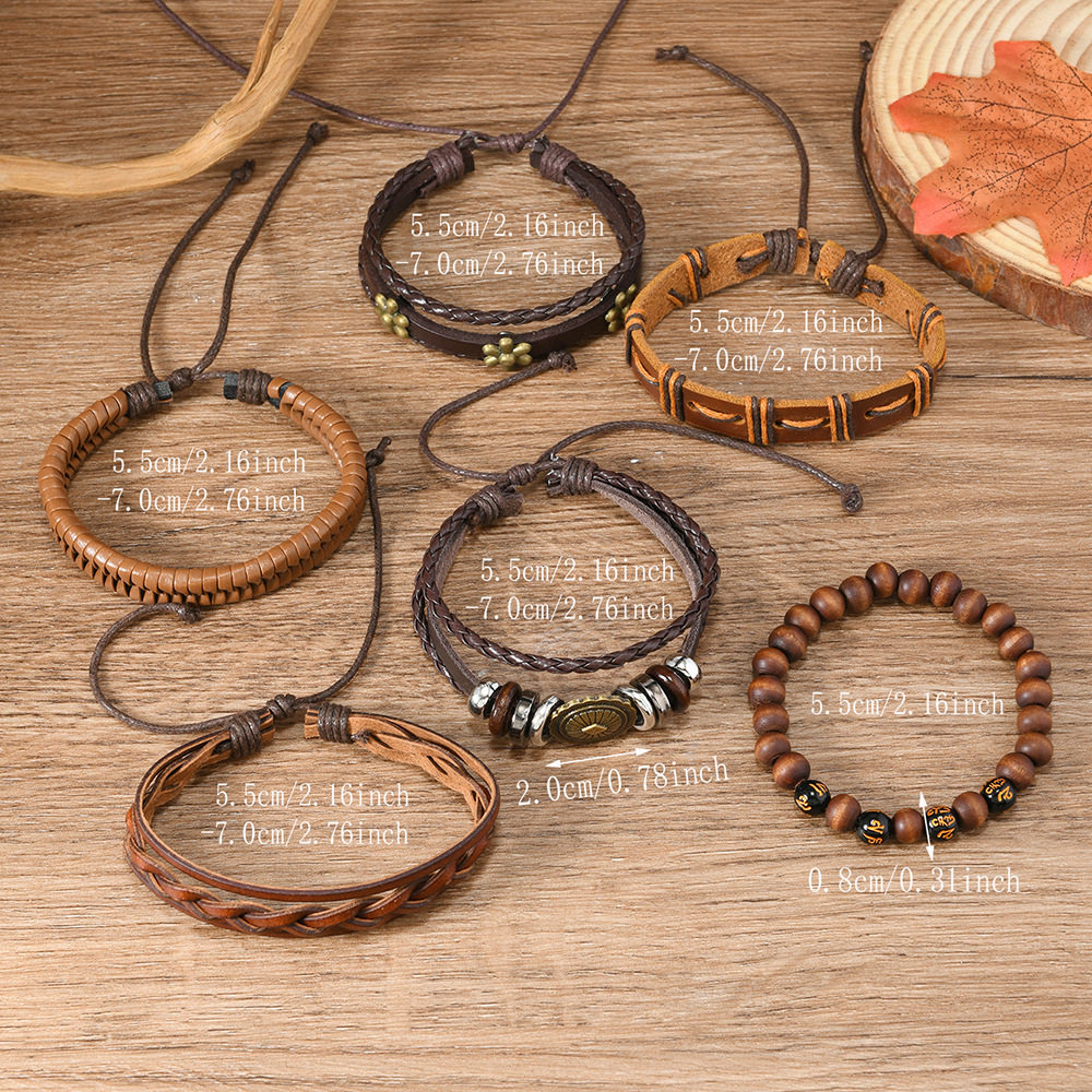 复古PU手链皮革手工编织串珠玻璃片生命树装饰男女士6件套组合