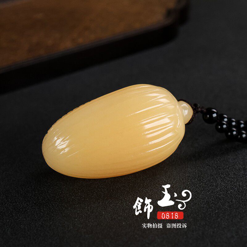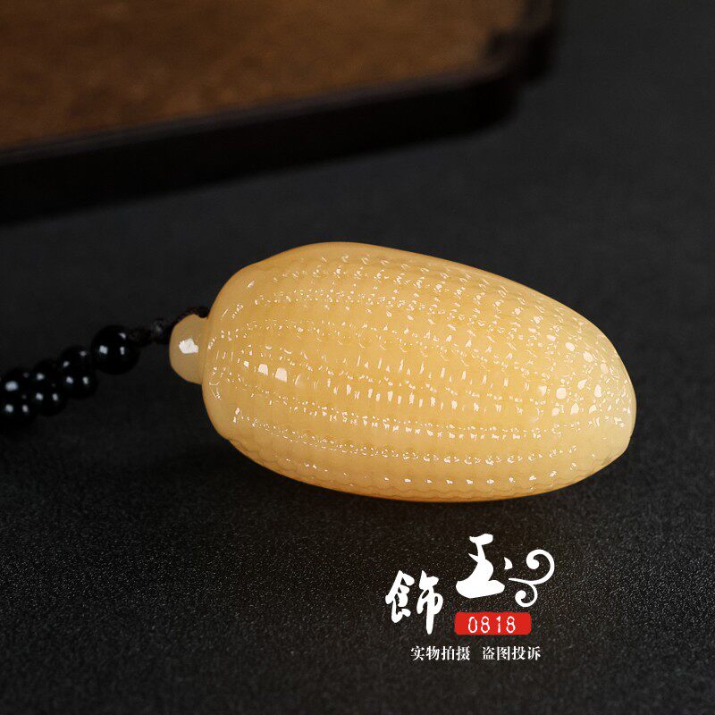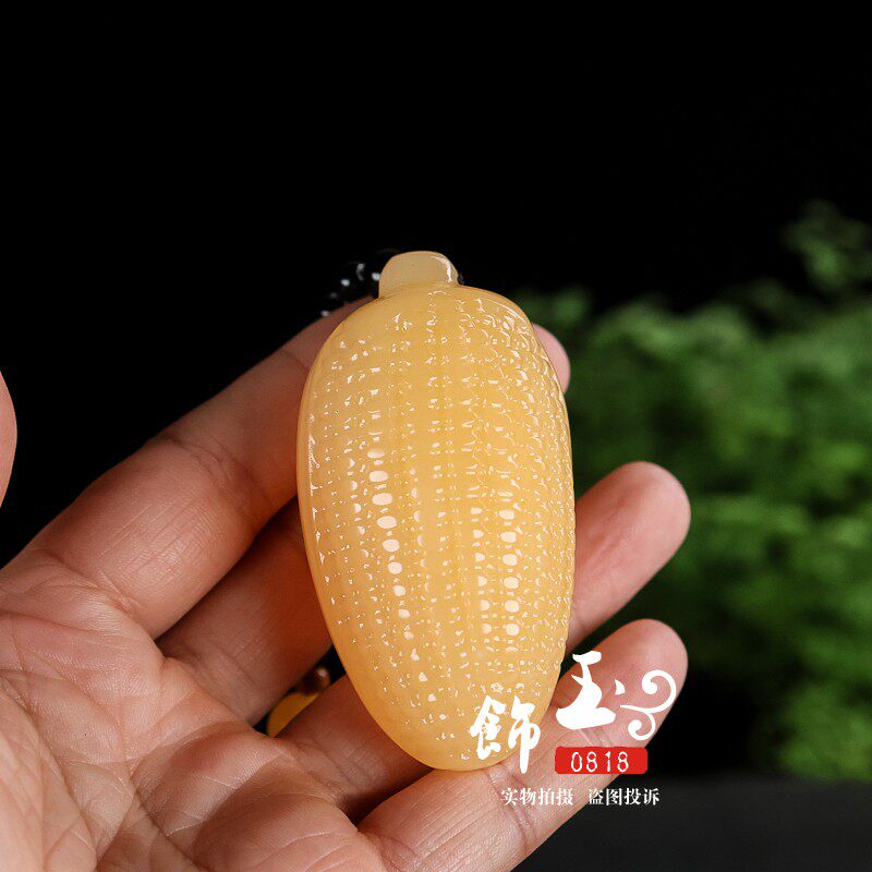 天然玉石把件阿富汗黄玉米手把件原石包谷穗黄色玉玉米把玩件