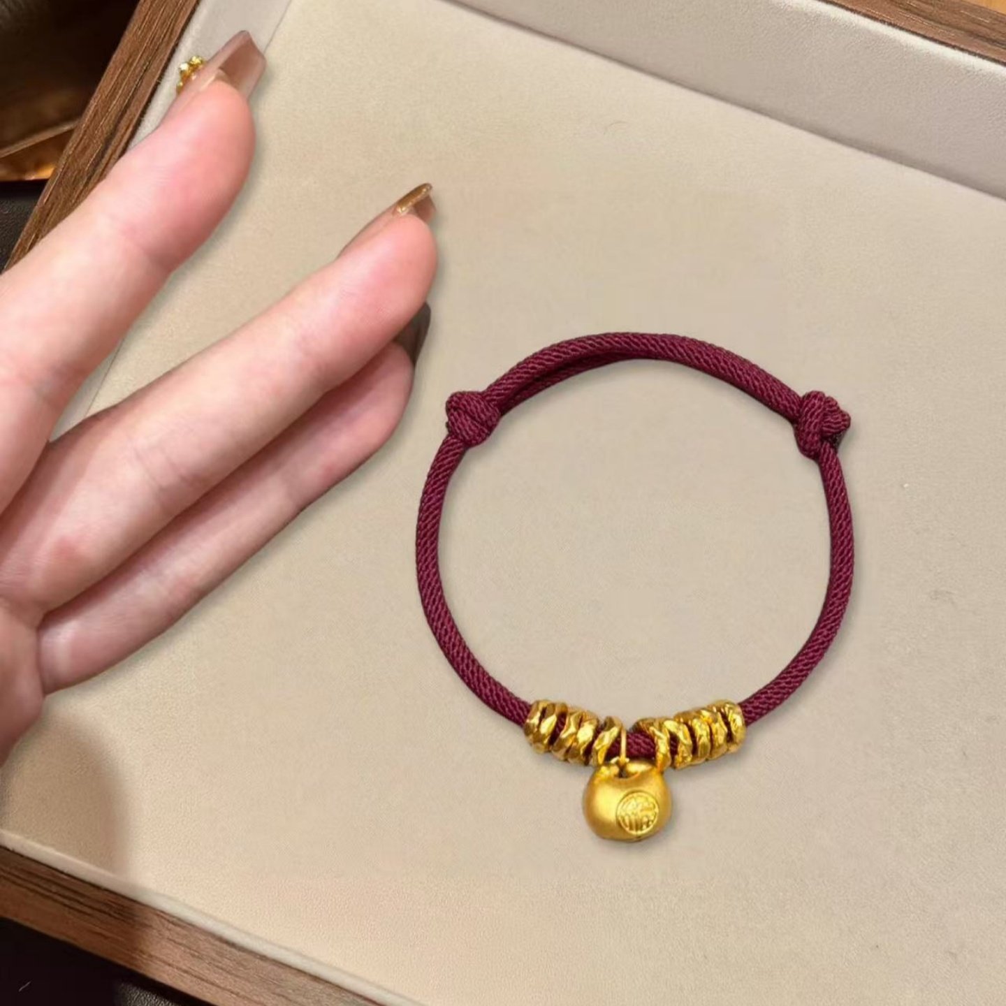 金店同款沙金小胖福红绳盘缠女高级感手饰黄金色新款时尚女士手串