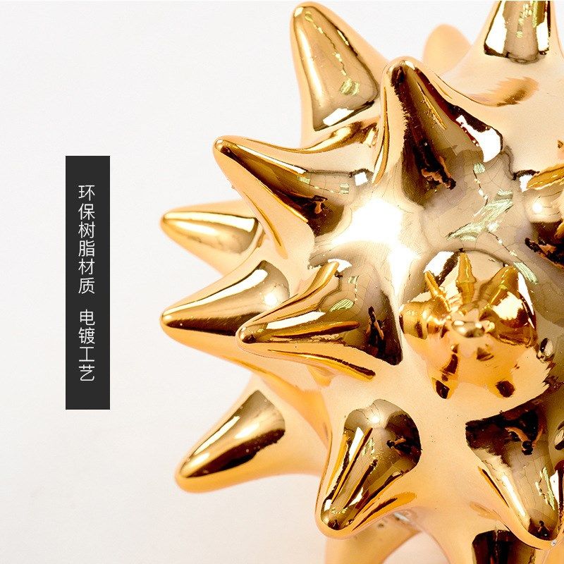 轻奢样板房间几何金属线团刺球海胆摆件港式水晶球书房玄关工艺品