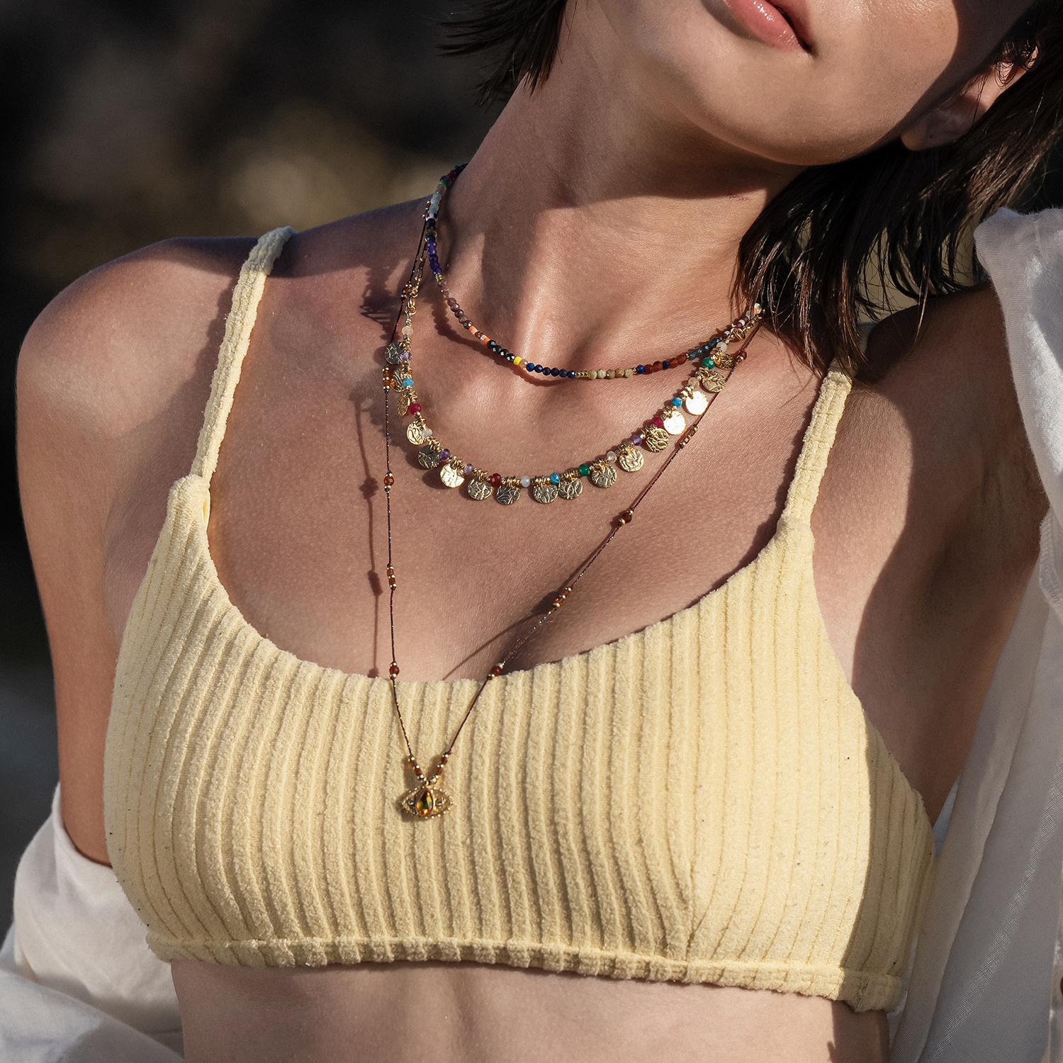 Haibays 彩色天然石编织藤蔓项链波西米亚风叠戴施家水钻眼睛吊坠