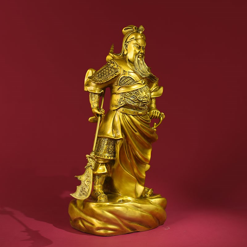 纯铜关公摆件黄铜横刀关公武财神关二爷家用供奉关羽武圣大号公司