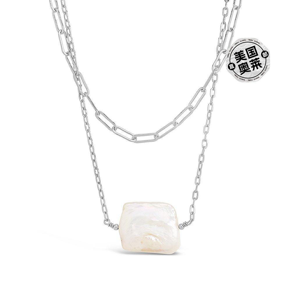 自营 sterling forever链环和珍珠分层项链 - 银白色 美国奥莱直