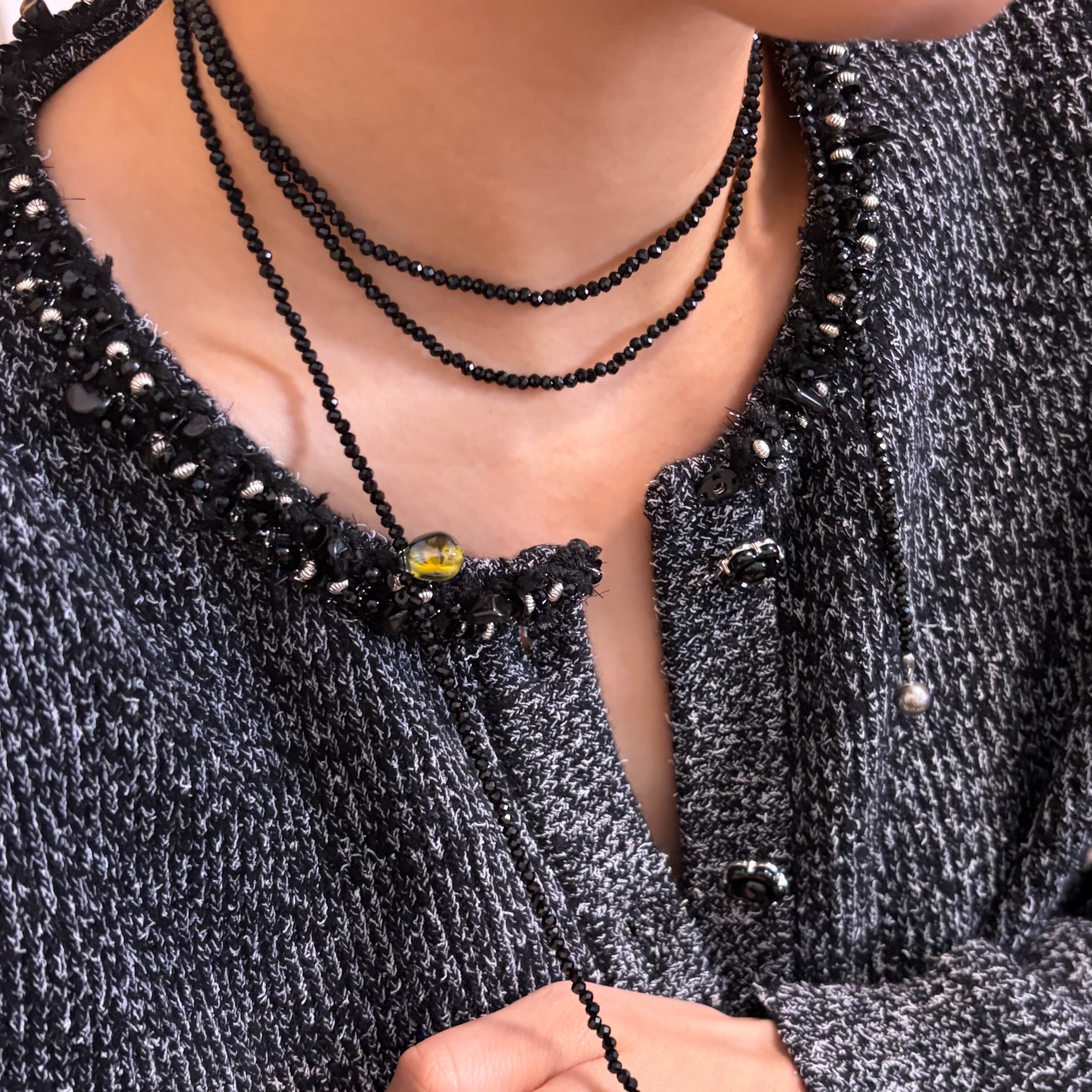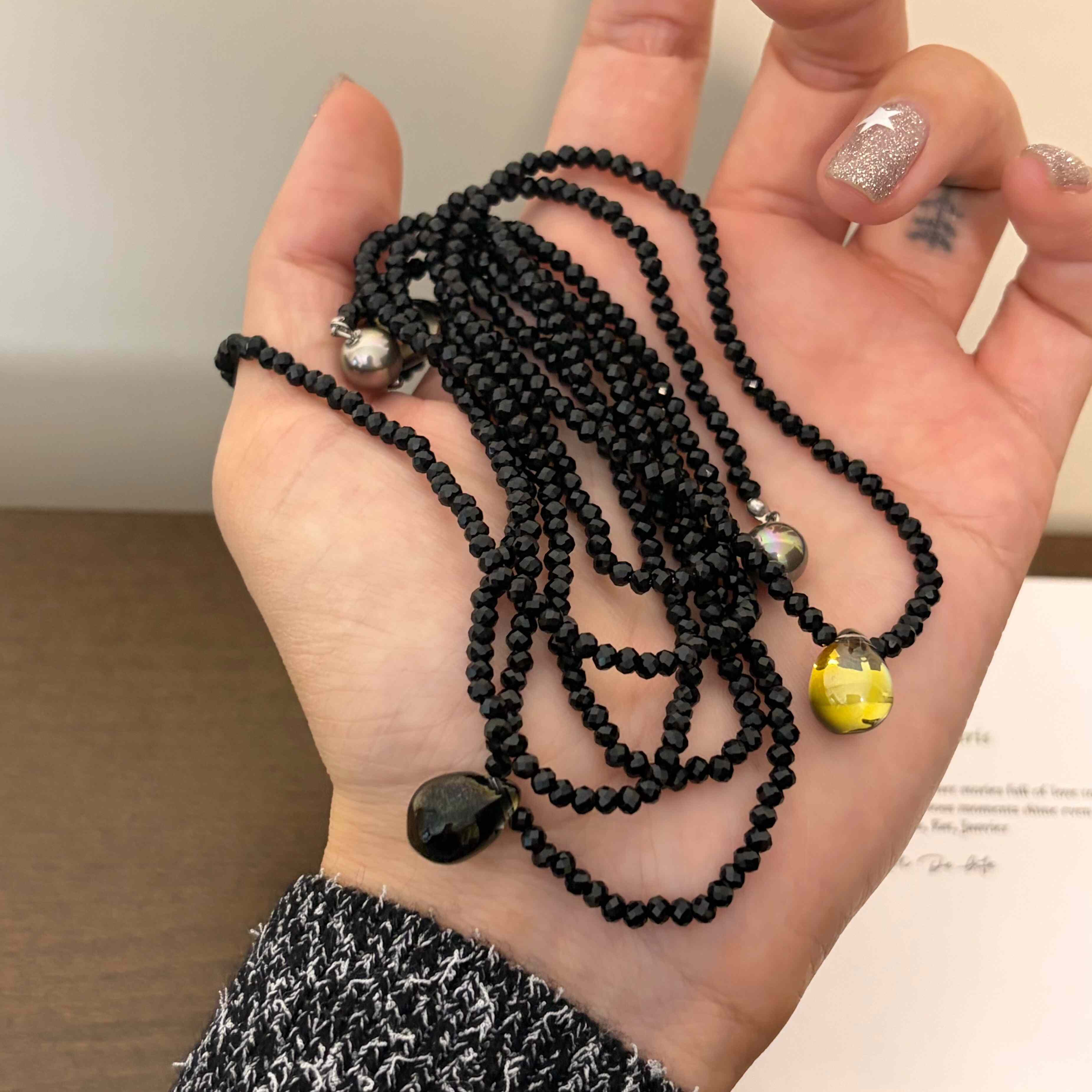734钛钢加长亮晶晶黑色多层项链珍珠毛衣链