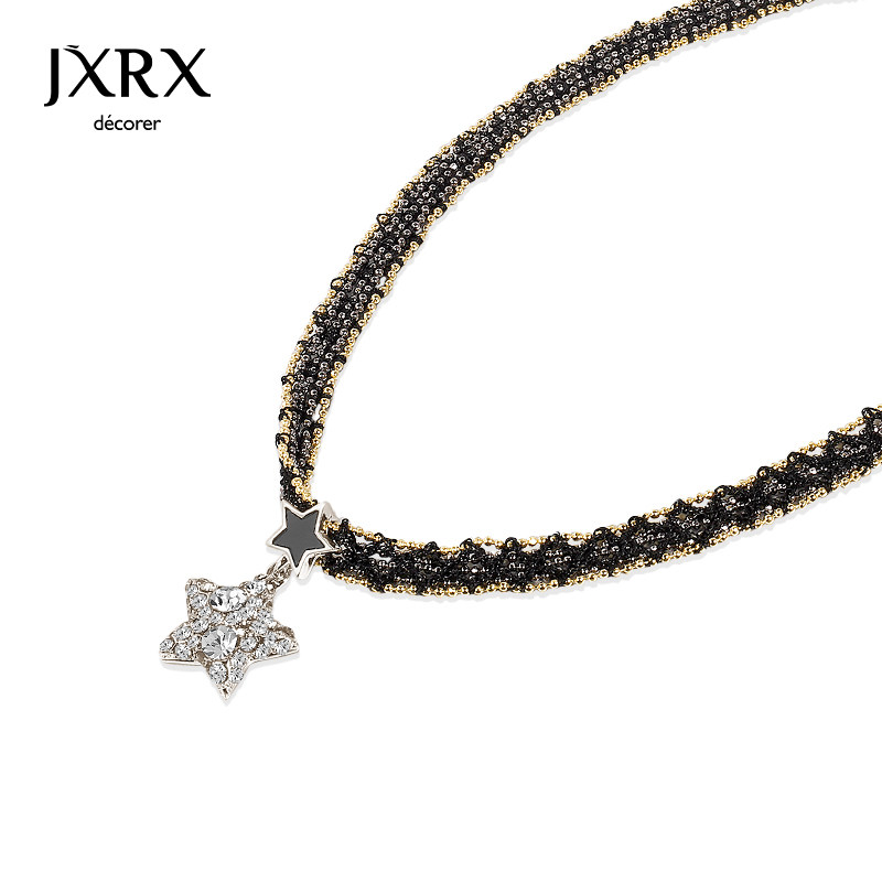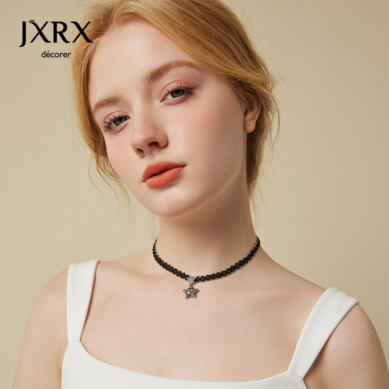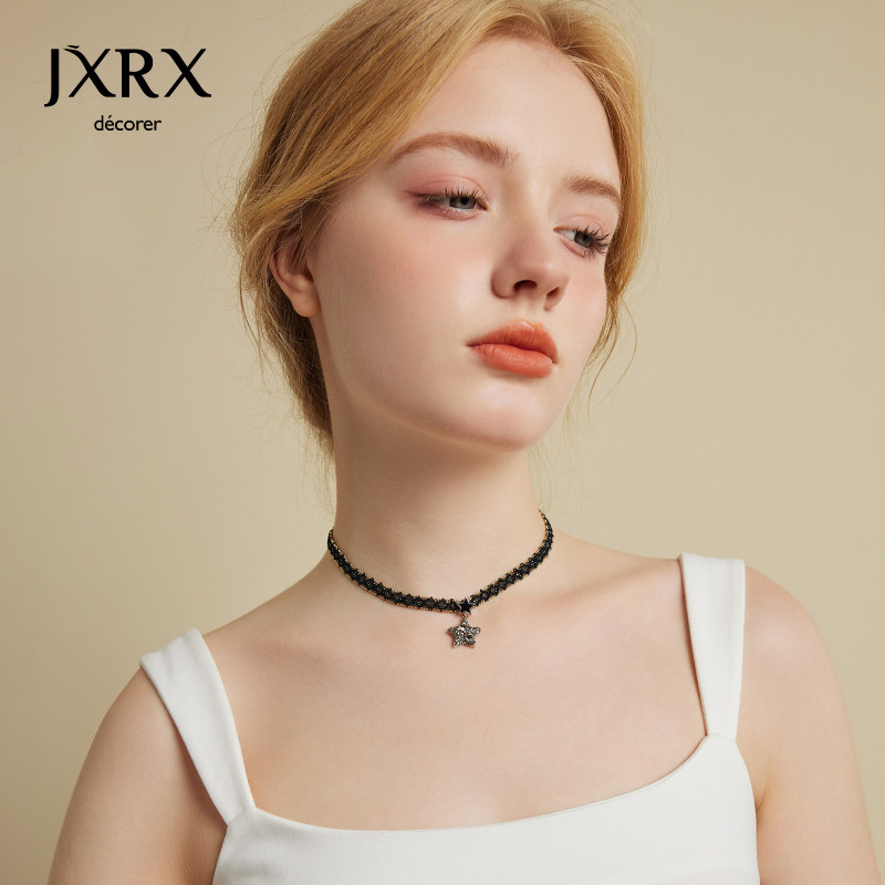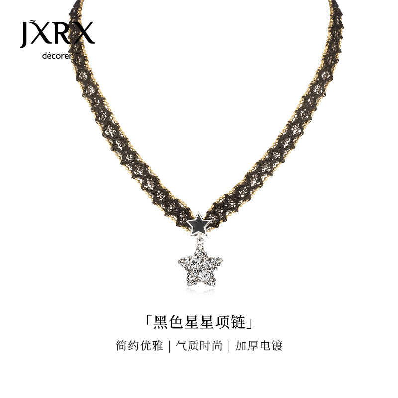 JXRX黑色蕾丝星星项链女高级感五角星吊坠锁骨链小众颈链脖子配饰