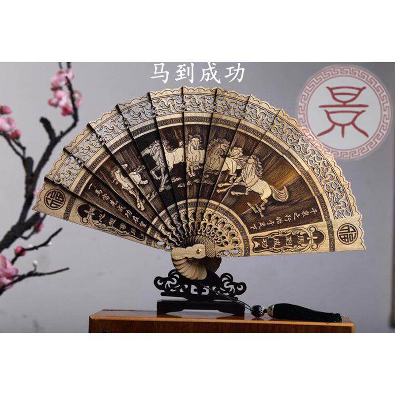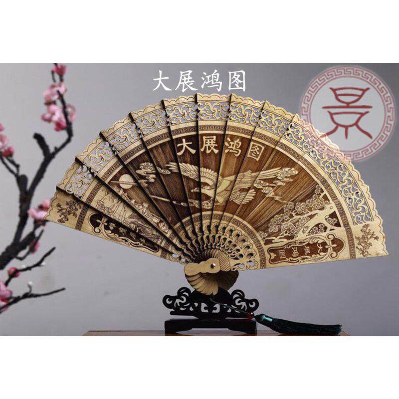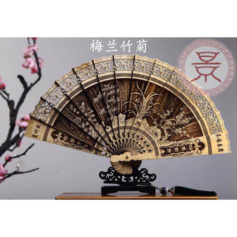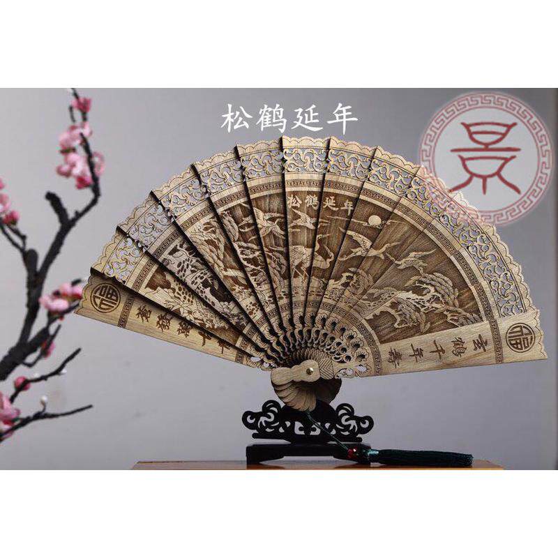 木扇子折扇镂空木质雕花工艺品摆件楠香木中国风夏季折叠装饰金丝