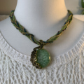 复古森系绿色编绳串珠编织月牙琉璃吊坠项链女小众波西米亚风配饰