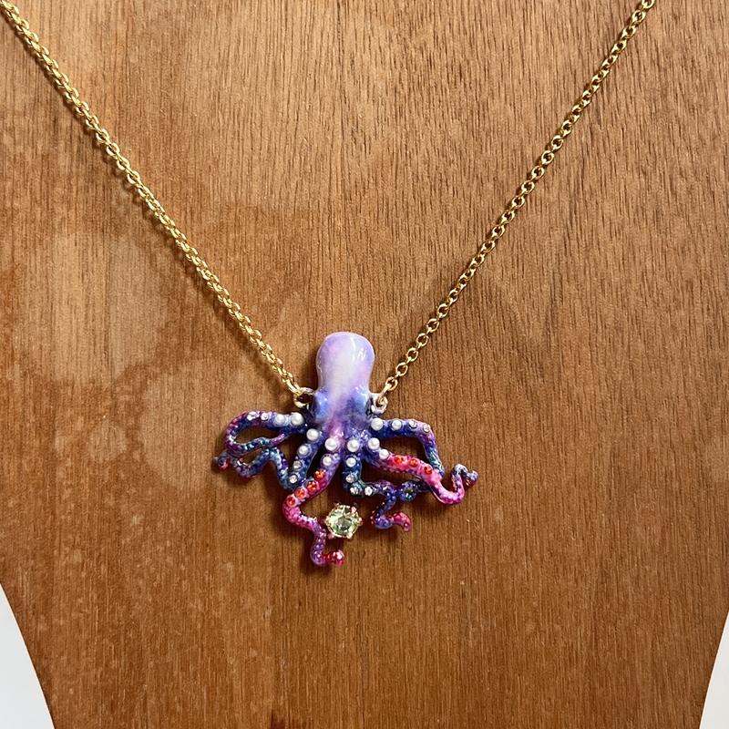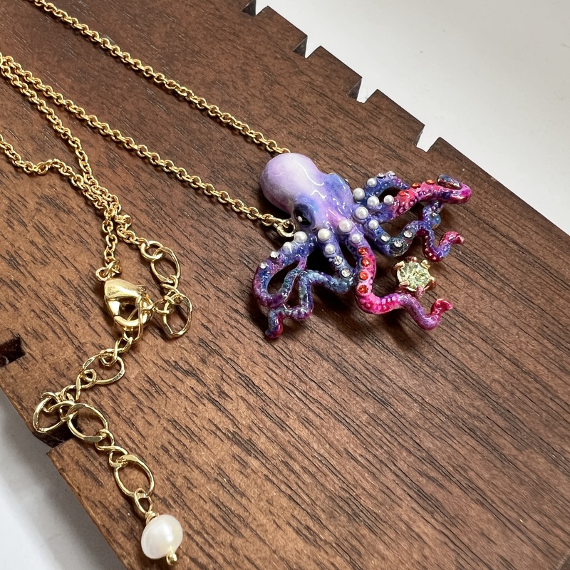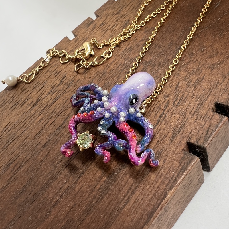 原创设计珐琅釉彩手绘八爪鱼章鱼短款项链新款个性可爱百搭送女友