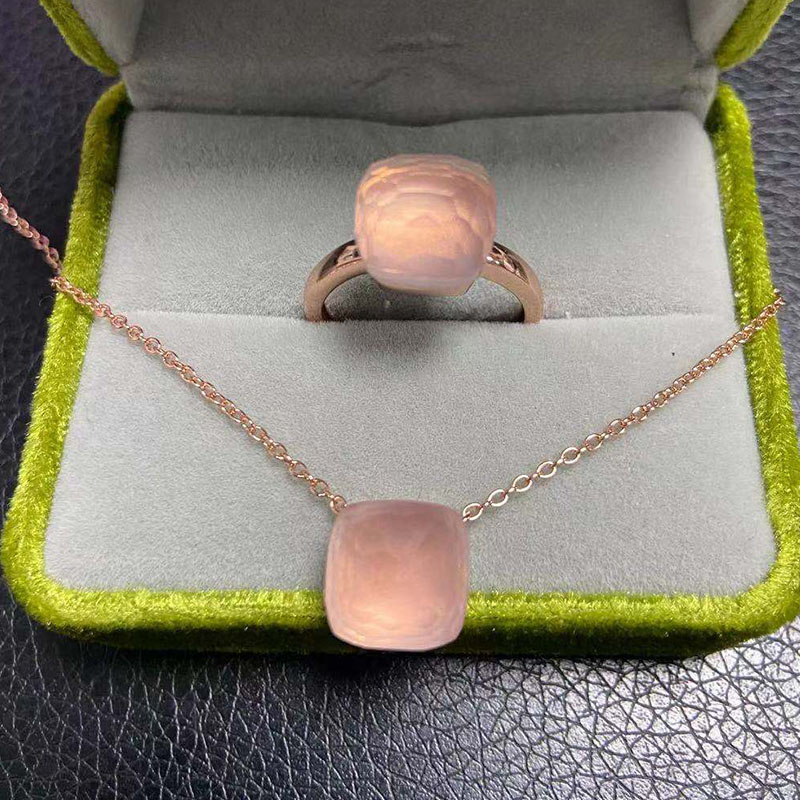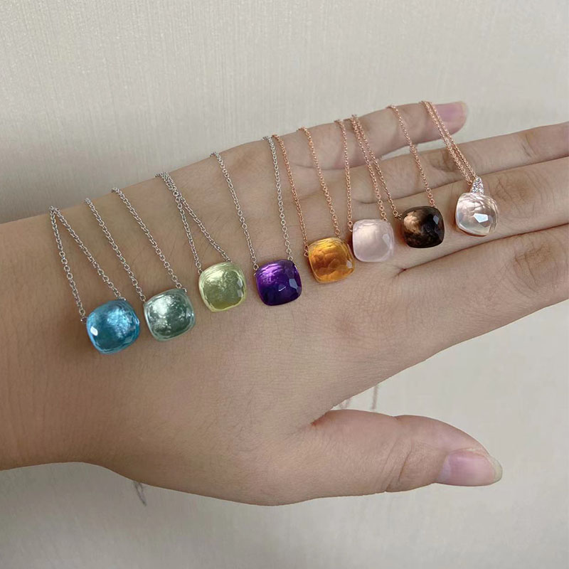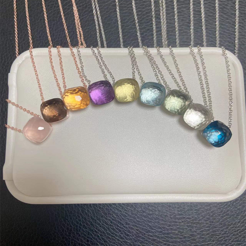 天然粉水晶项链女 925纯银黄水晶紫晶绿茶晶白水晶托帕石可调节