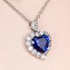轻奢亚马逊新款 镶嵌宝蓝色爱心形项链女 时尚OL气质订婚吊坠