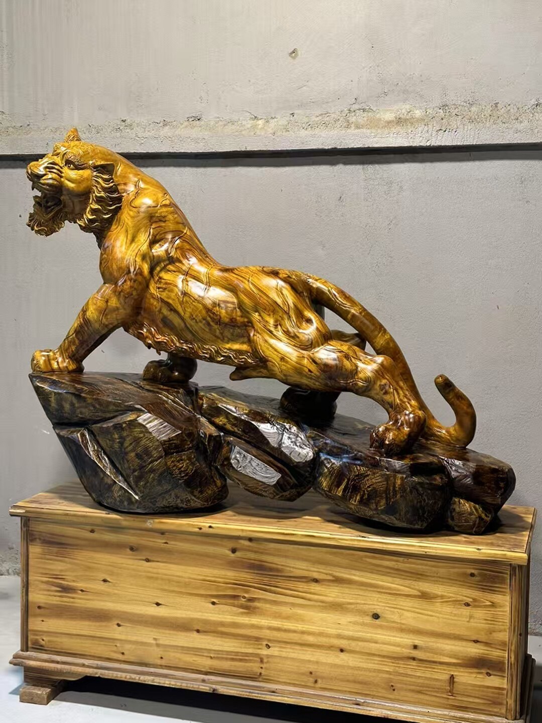 香樟木根雕摆件天然随形实木雕刻木雕老虎公司酒店玄关工艺送礼