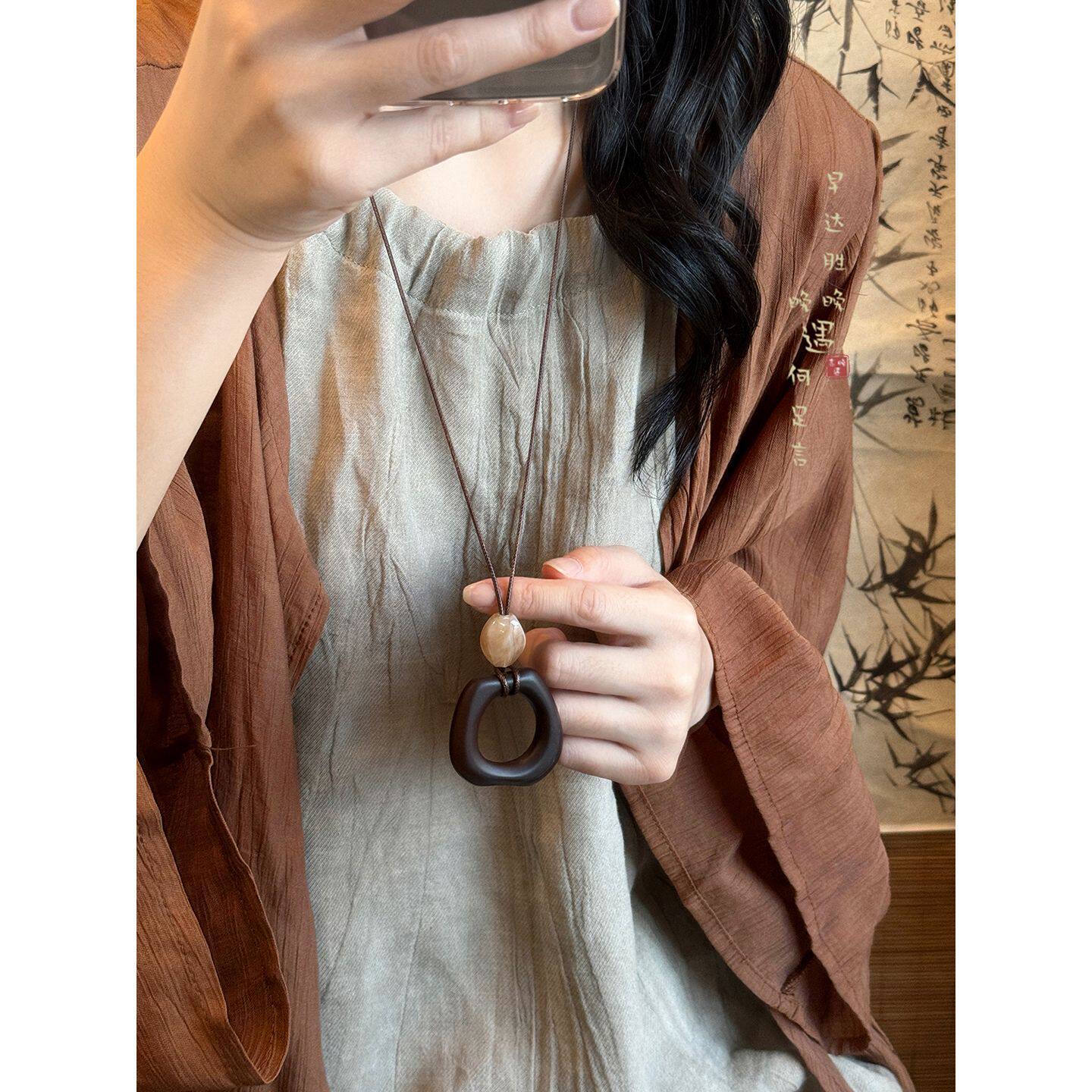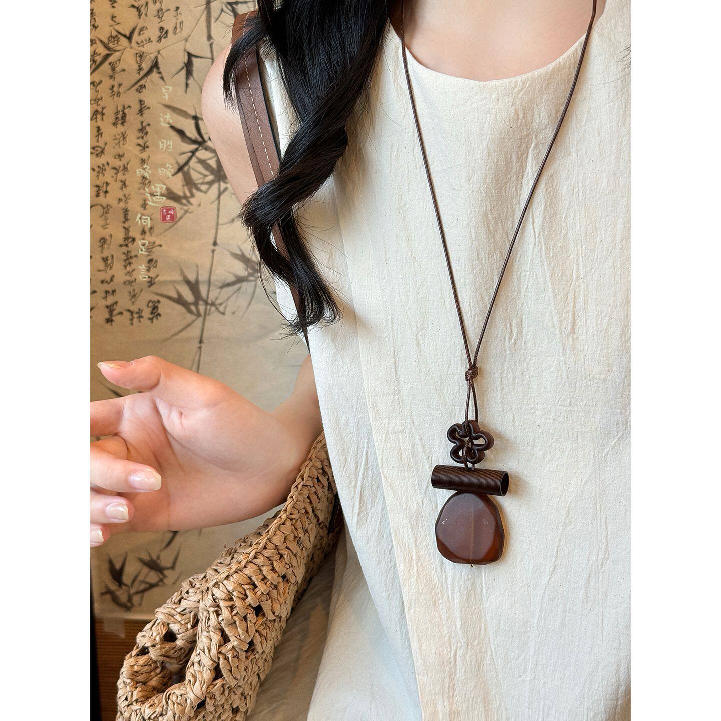 棕色不规则长款吊坠项链女款新中式复古挂绳毛衣链高级感挂脖配饰