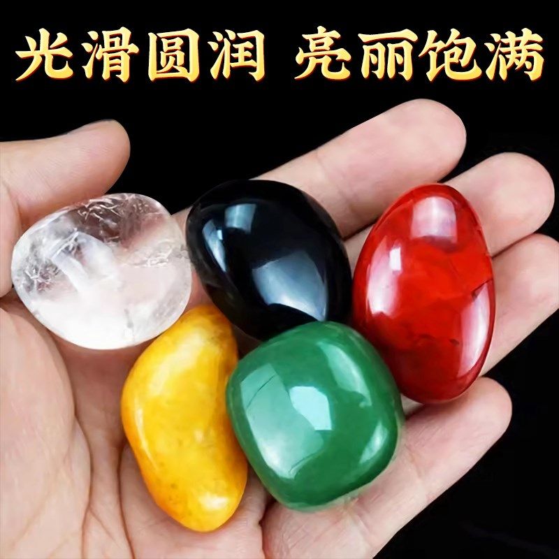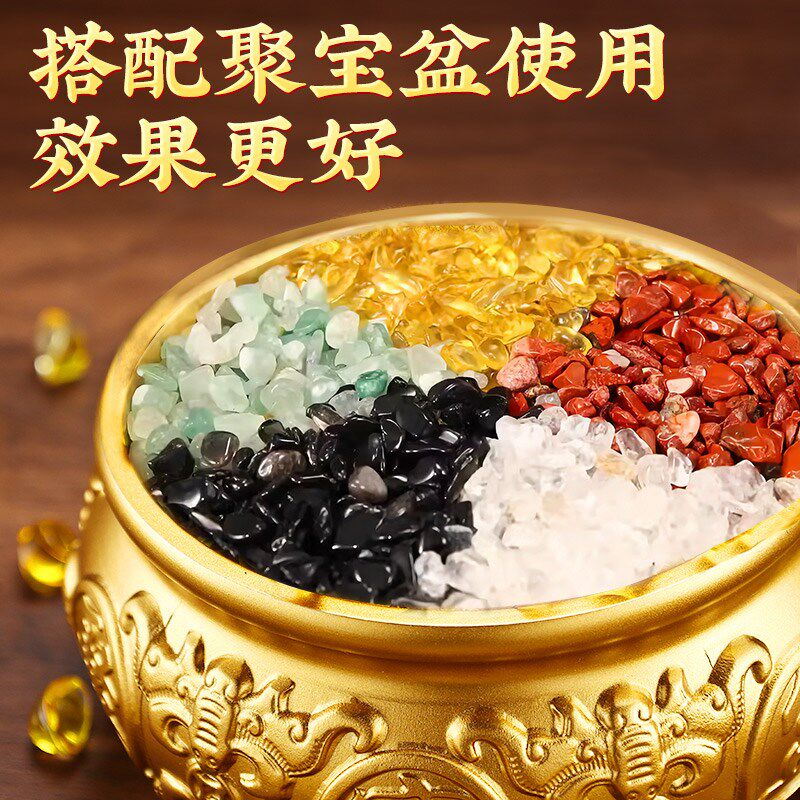 速发碎色件水晶原石水晶五石五彩白黑绿红黄色五行聚宝盆摆石配件