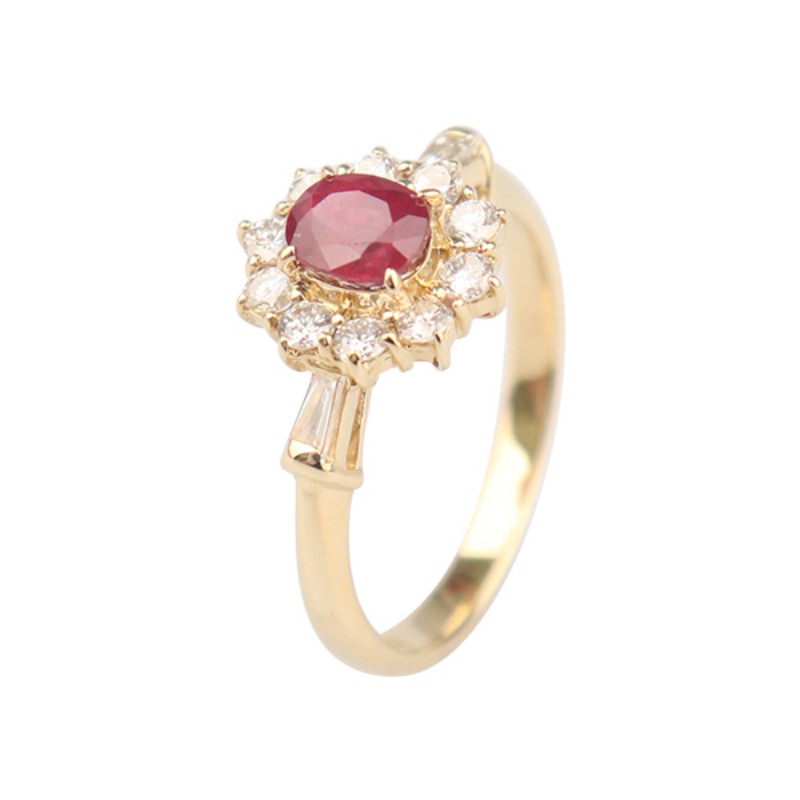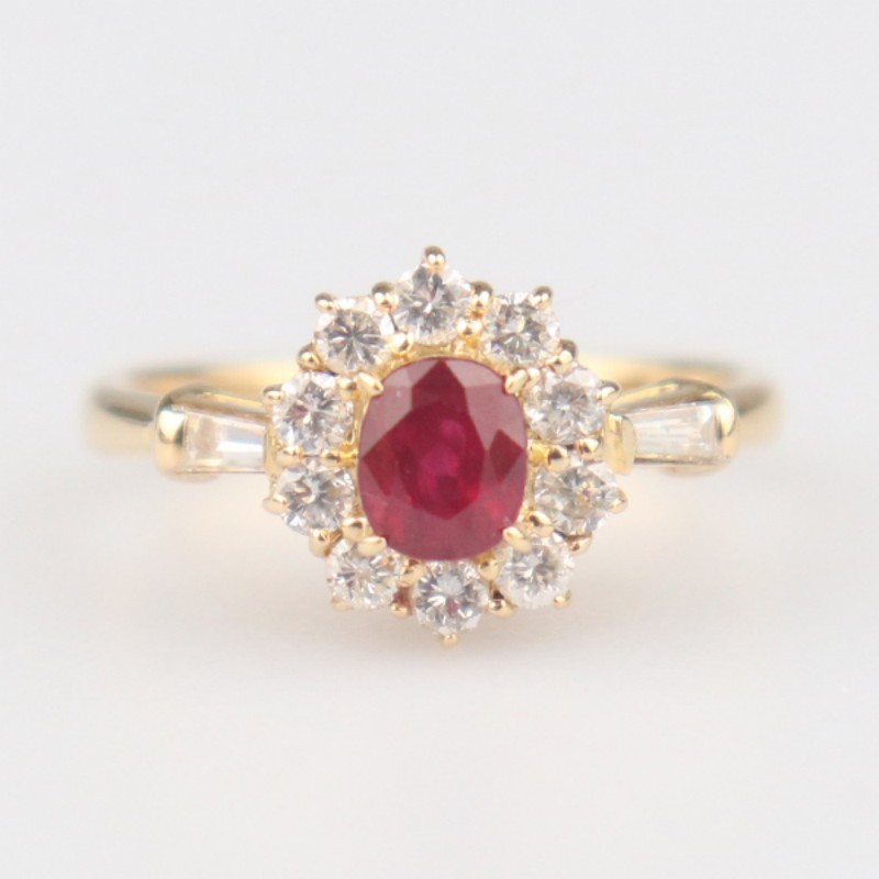 【自营】中古95新日本进口椭圆形切工红宝石钻石戒指K18黄金49号