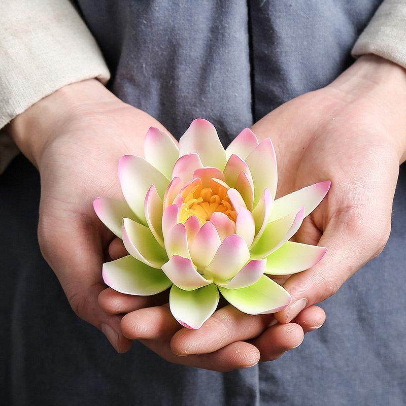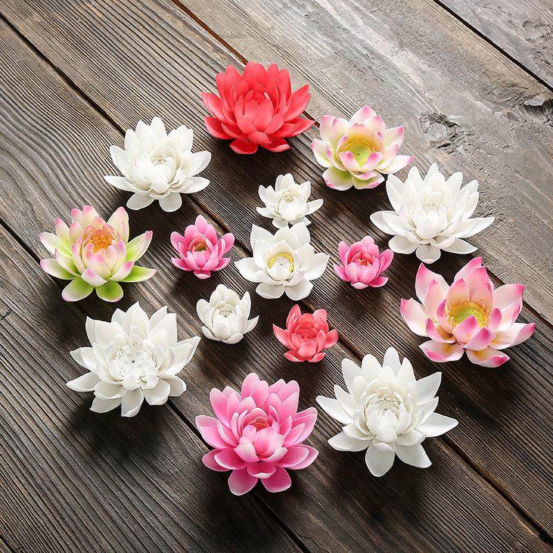 纯手工陶瓷莲花白色粉色黄色艺术品家居搭配博古架根雕摆件