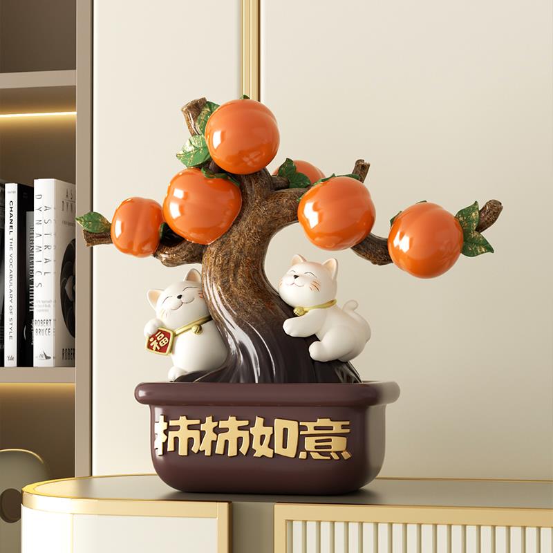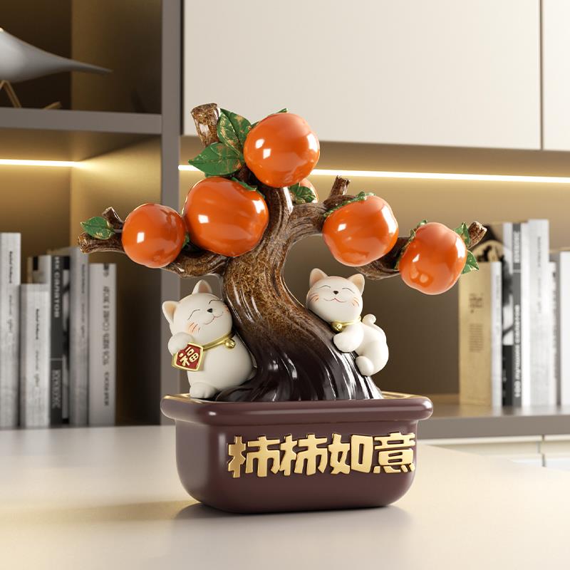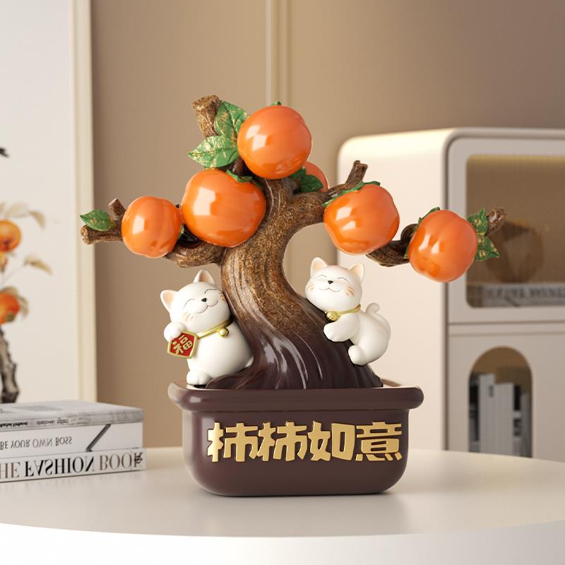 柿柿如意招财猫桌面摆件客厅电视柜玄关装饰家居好物乔迁新居礼品