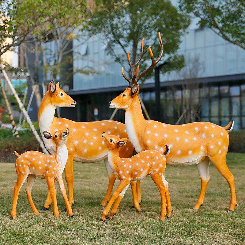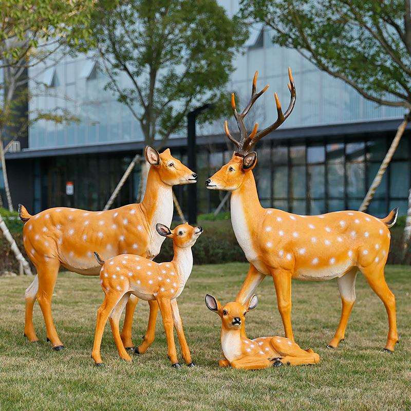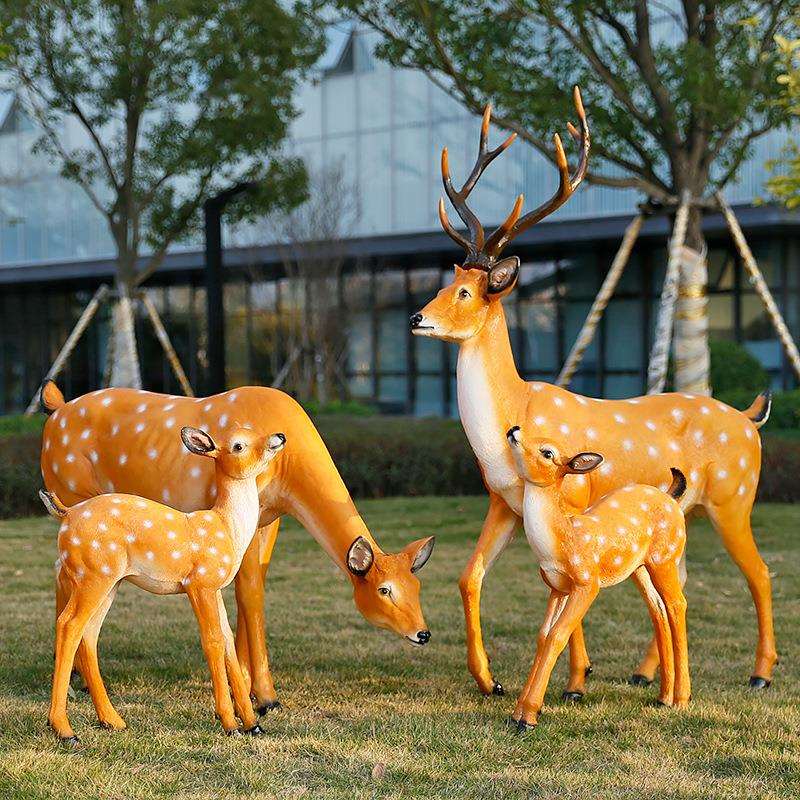 仿真梅园花摆件动物玻WZU璃花园家居饰钢品公鹿园田庭院草坪雕塑