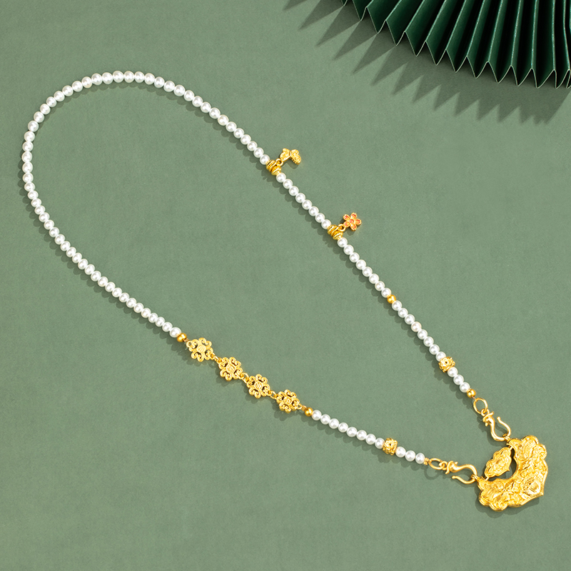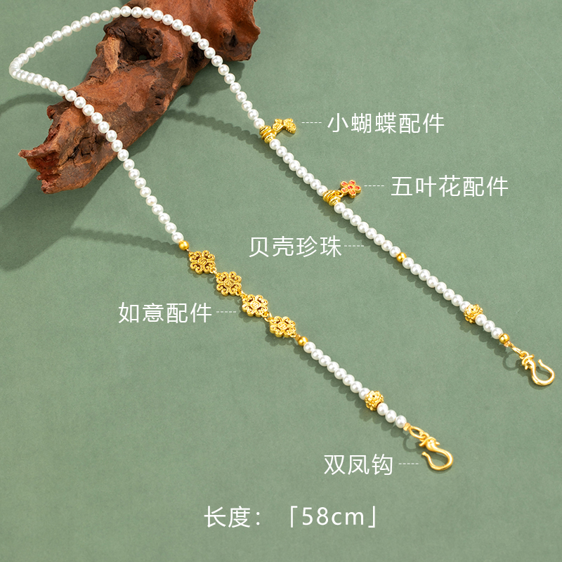 珍珠元素长链条吊坠配绳链女新中式宫廷风装饰配件八宝罗盘吊坠链