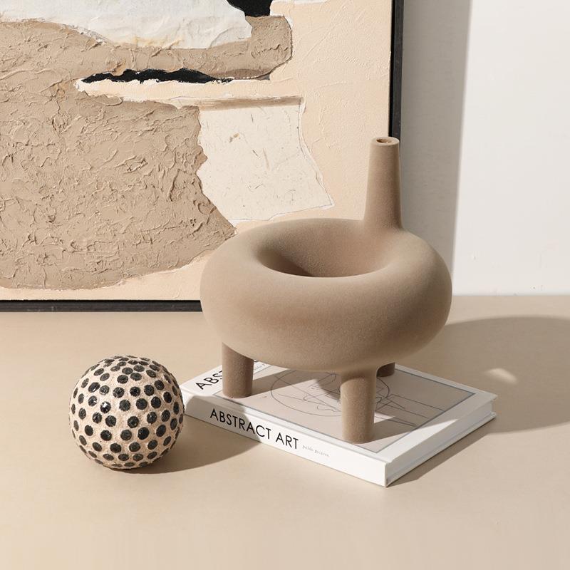 意式极简创意树脂植绒三足花瓶售楼处别墅客厅设计师桌面装饰摆件