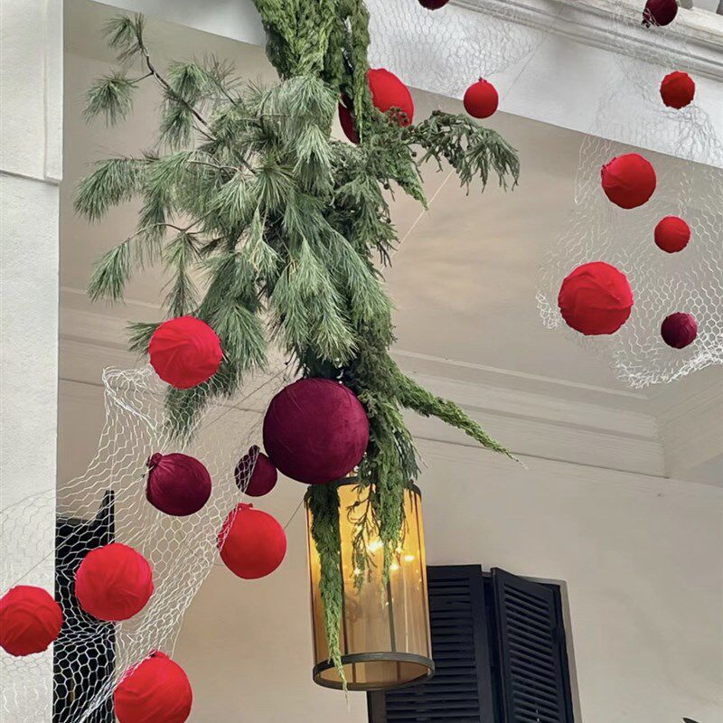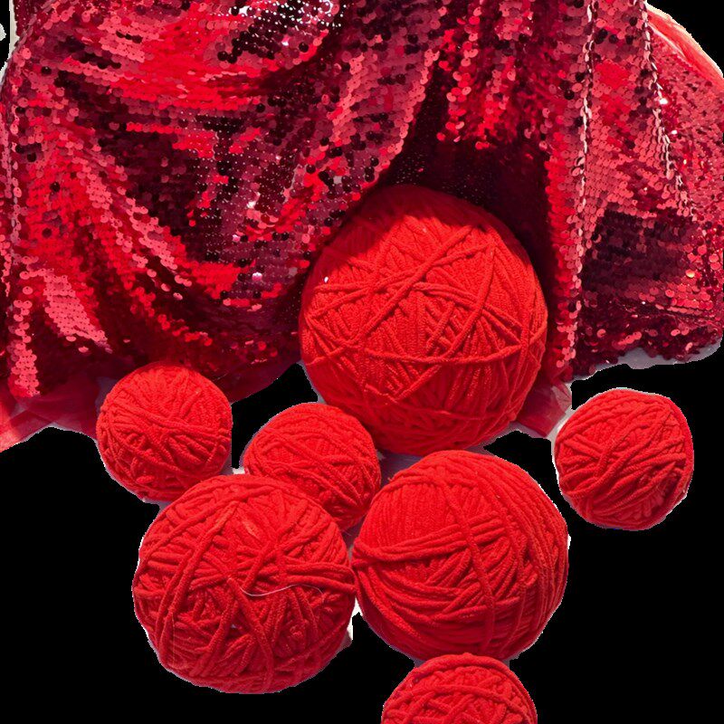 新年红色丝绒布毛线球打卡点布置美陈列泡沫婚礼布景橱窗装饰道具