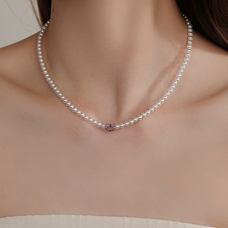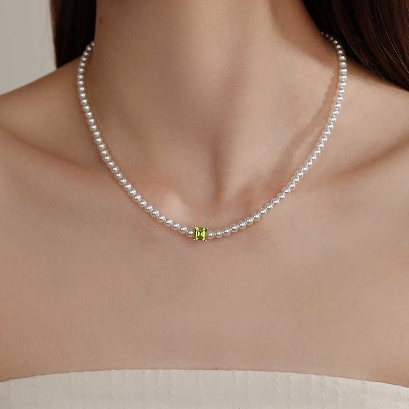 天然托帕石珍珠项链2025新款幸运石生辰石水晶项链配饰彩宝锁骨链