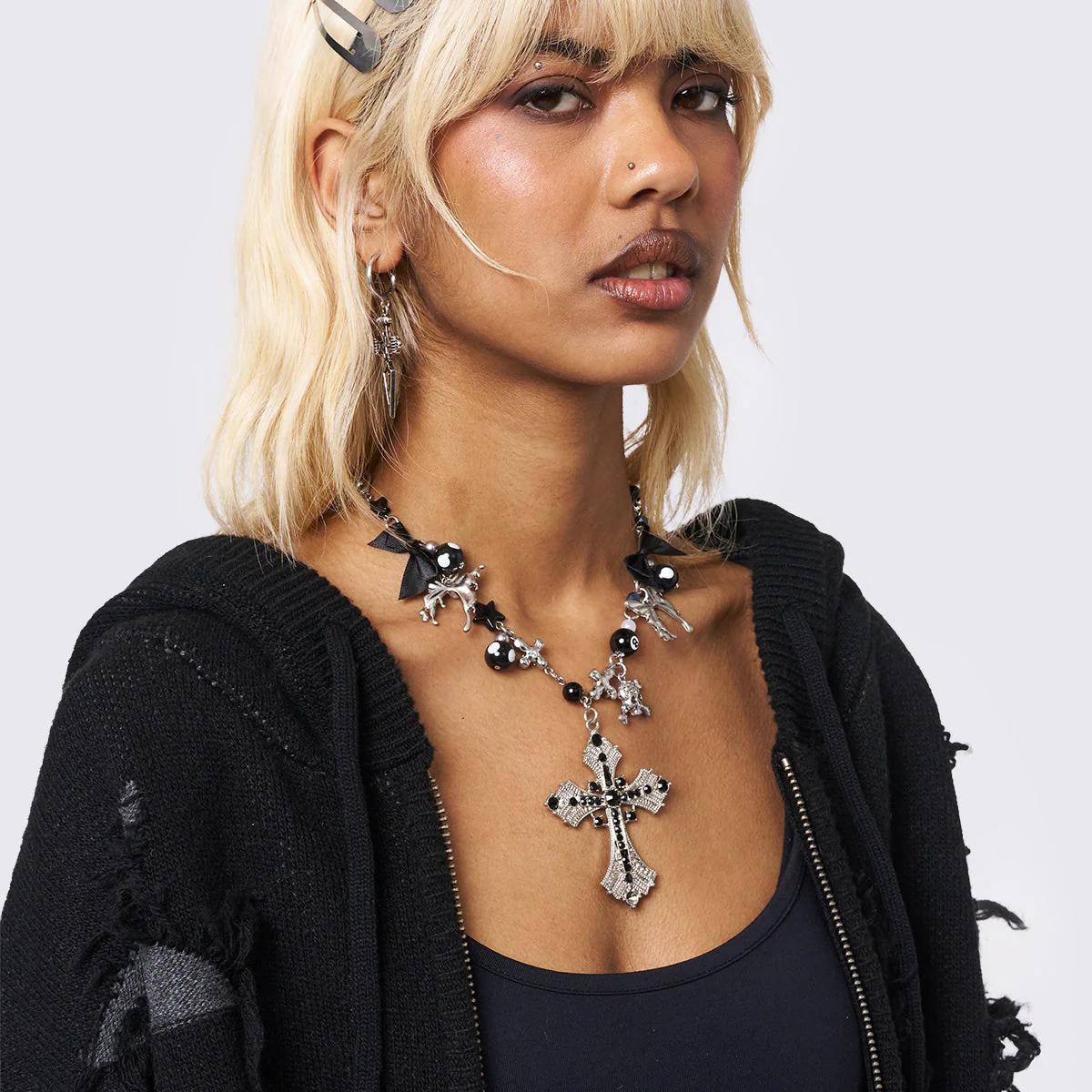 Minga 新品Y2K亚文化 串珠/十字架/球 吊坠 可调节项链锁骨链