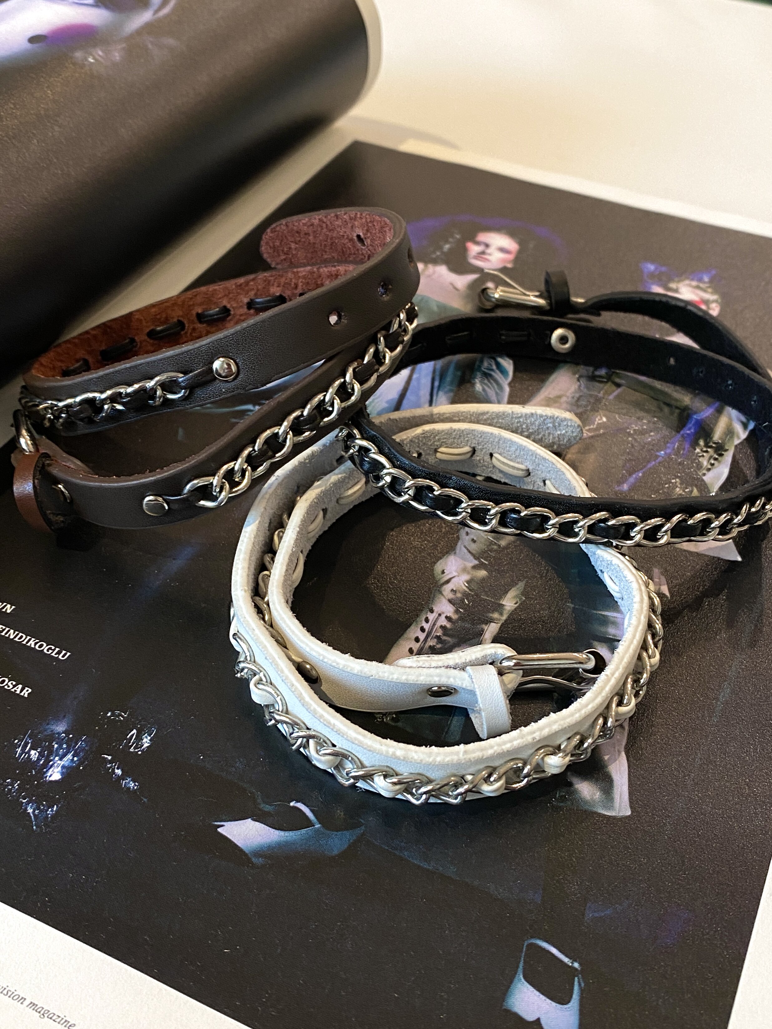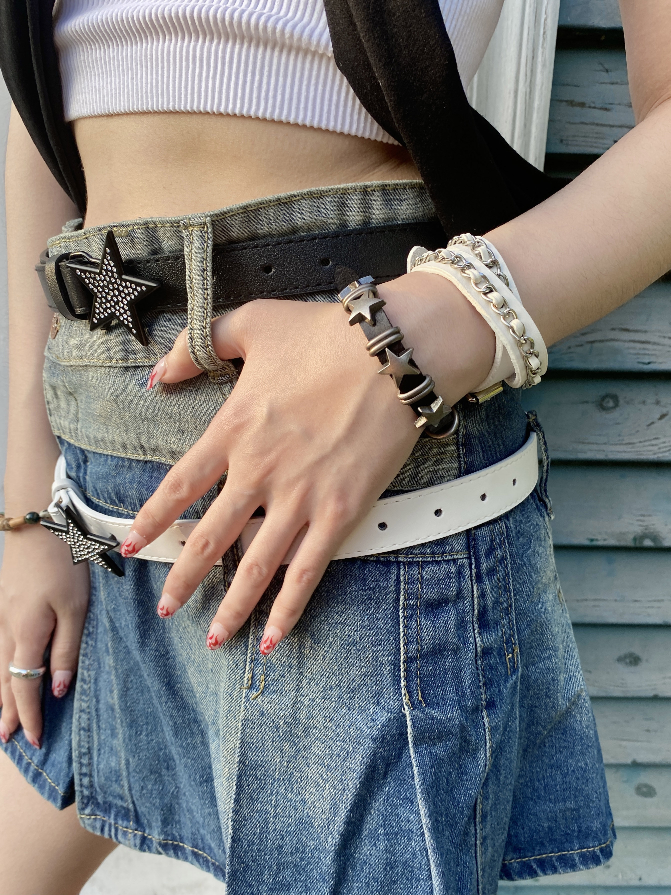 Gallery朋克y2k摇滚星星牛皮手链复古辣妹哥特暗黑情侣细手环项链