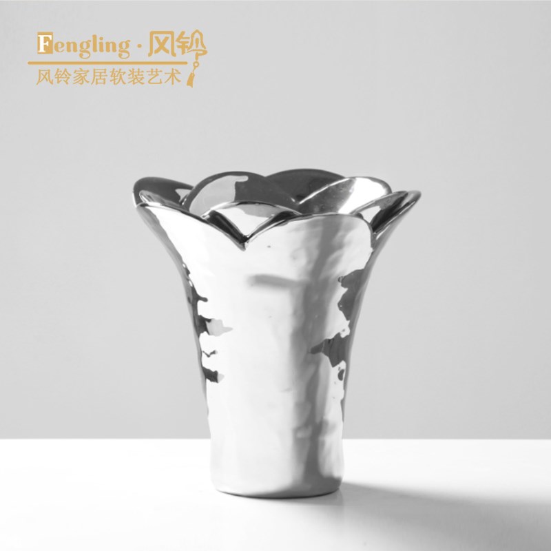 创意简约花瓣陶k瓷花瓶现代家居样板间客厅桌面装饰摆件花器