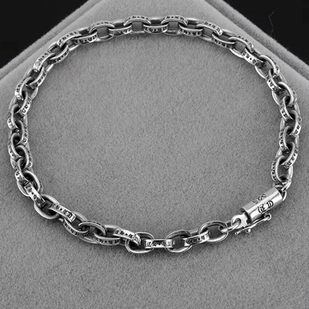 泰银字母古巴粗款手链镀S925纯银符号嘻哈做旧梵文时尚罗志祥手环