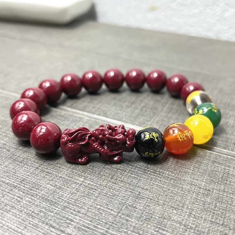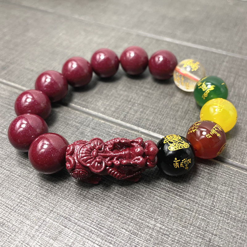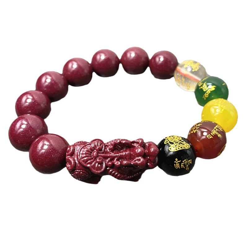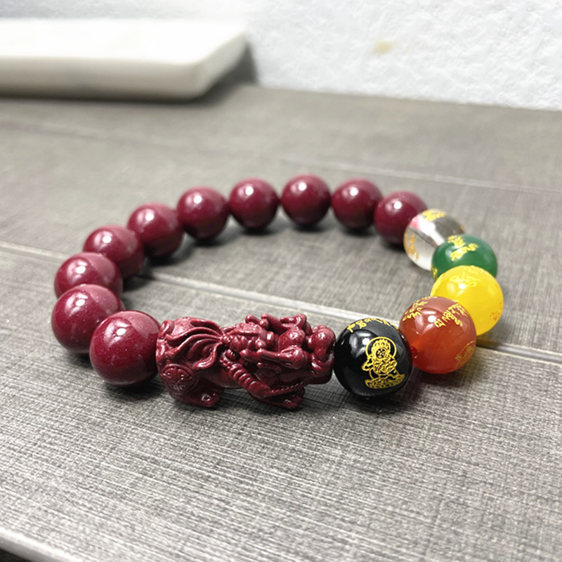 紫金砂高含量朱砂手链五路圆珠貔貅手串男女款精美饰品单圈