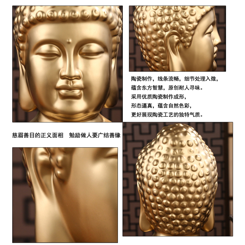 陶瓷释迦摩尼佛首摆件家居如来佛祖佛像招财禅意金佛头镇宅工艺品