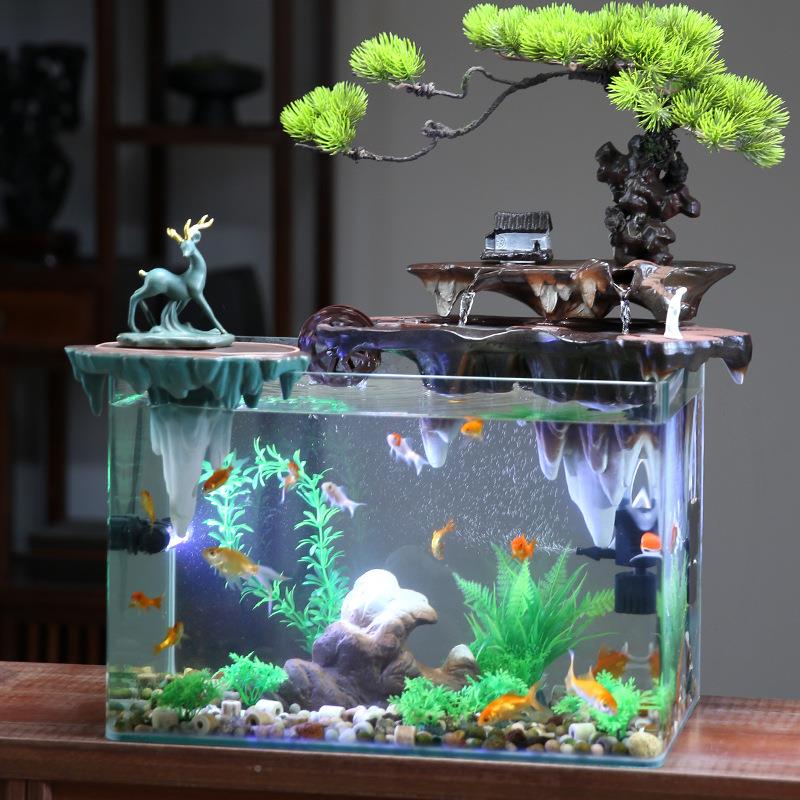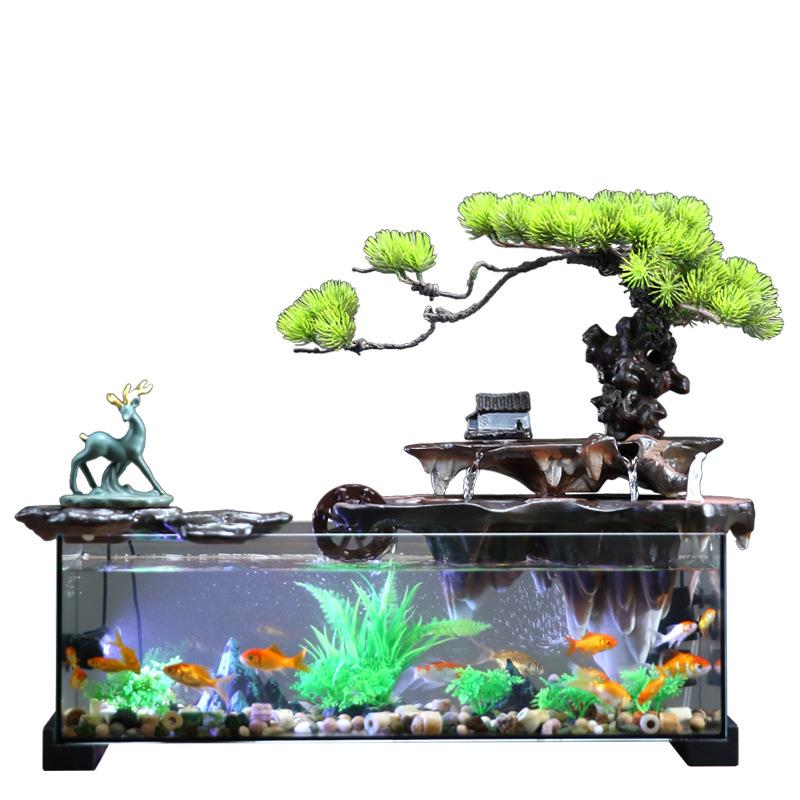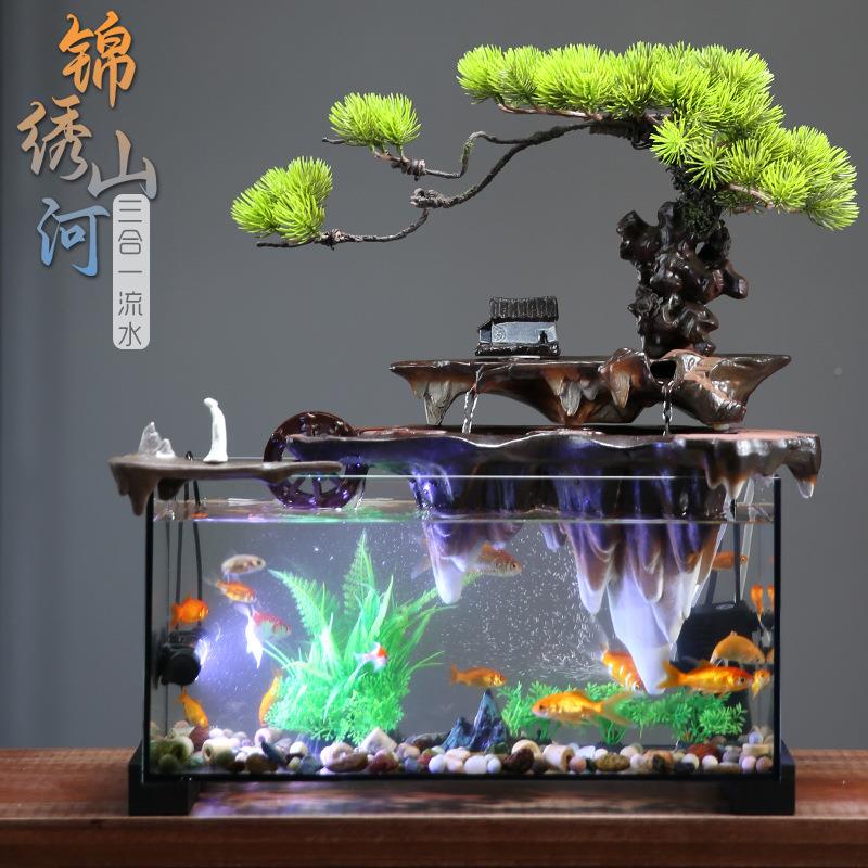 养鱼缸流2024058水摆件循环水厅滤风招财办公室过造景观电视柜水