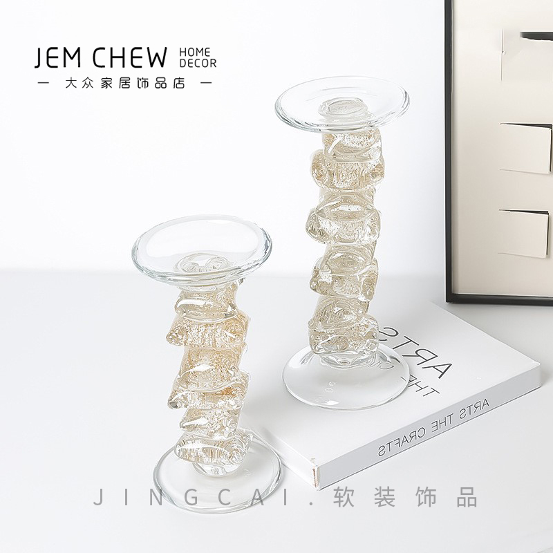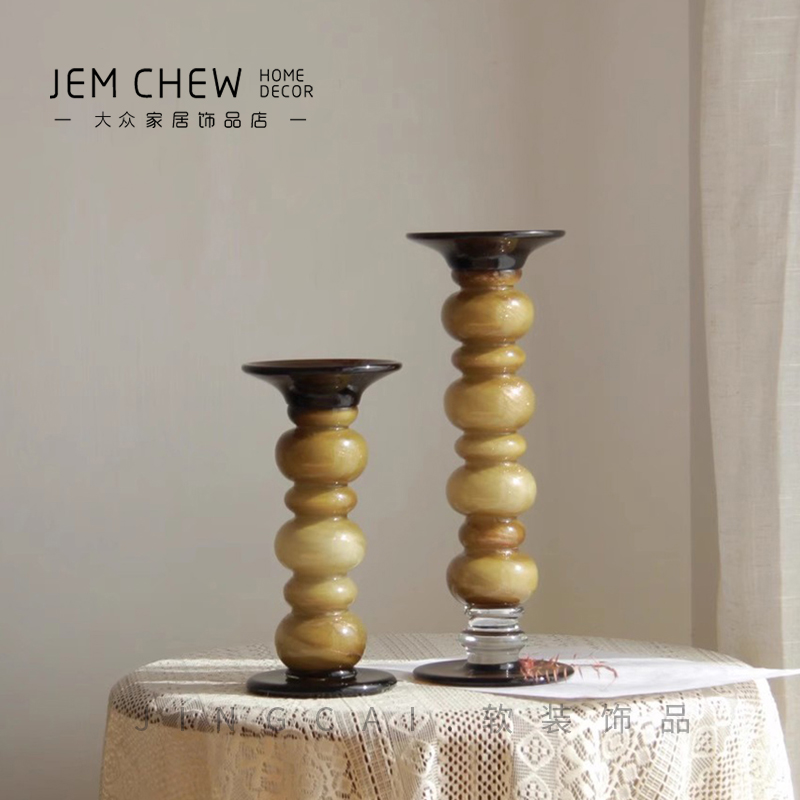 中式现代中古艺术玻璃琉璃烛台装饰客厅桌面摆件高级氛围感样板间