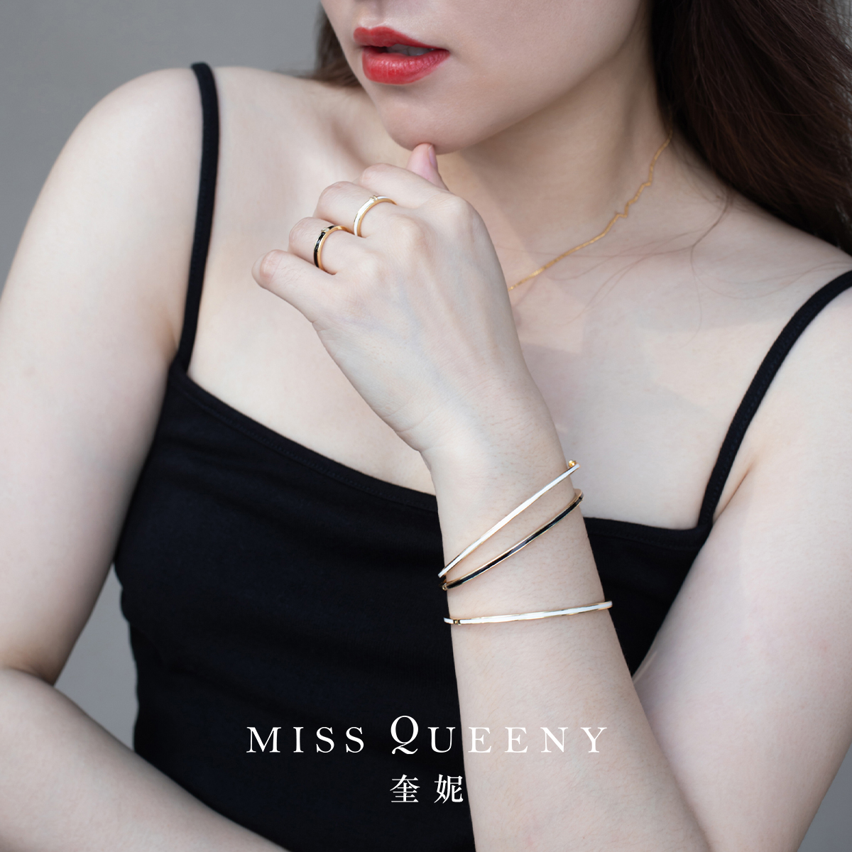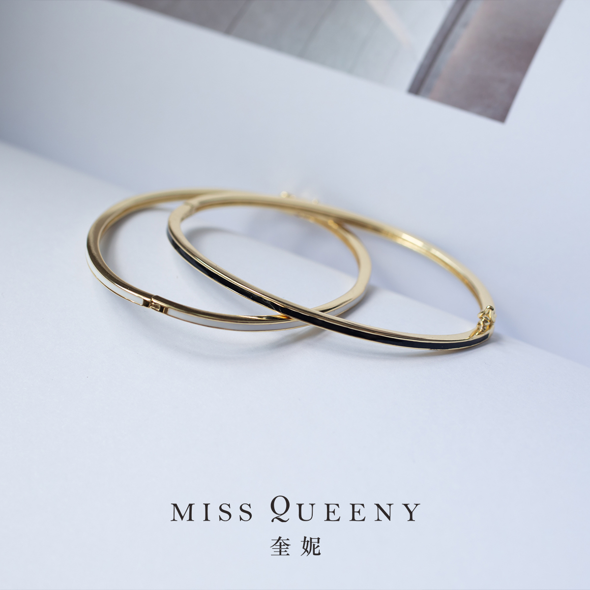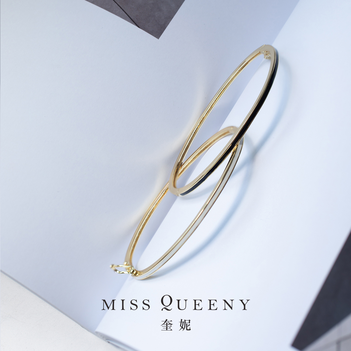 MissQueeny奎妮小姐|黑白珐琅卡扣手镯简约日常个性气质干净素雅