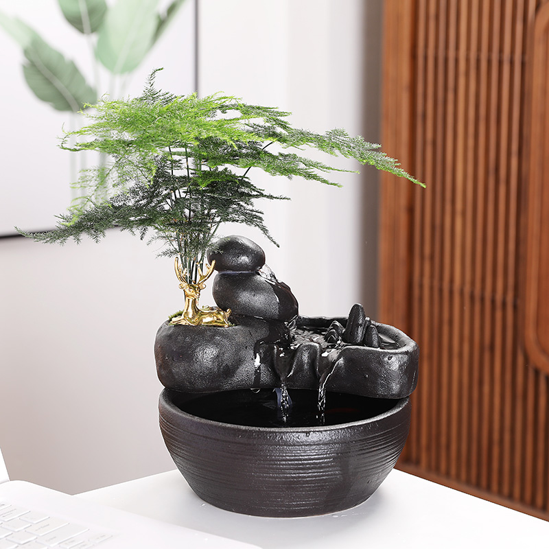 流水摆件中式创意礼品陶瓷循环鱼缸桌面招财生财客厅办公室流水器