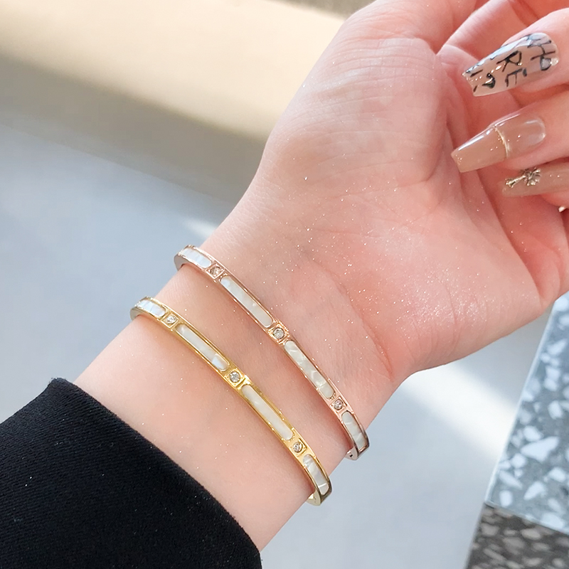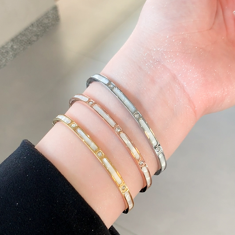 节节高升手镯子仿白贝母手镯女高级感竹节钛钢手镯素圈手环手饰品