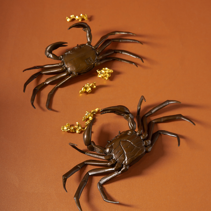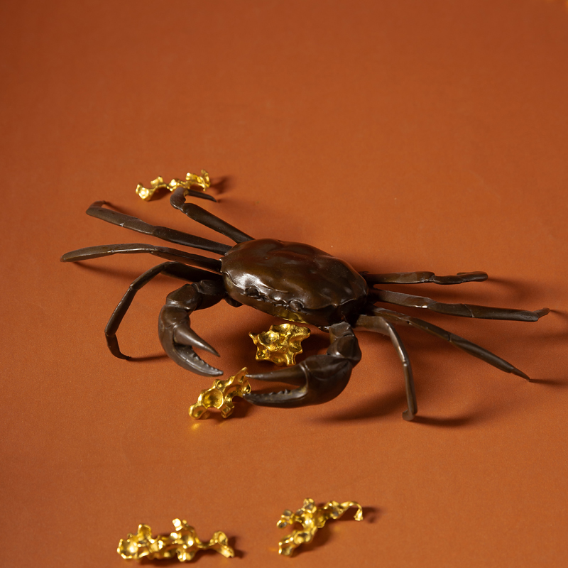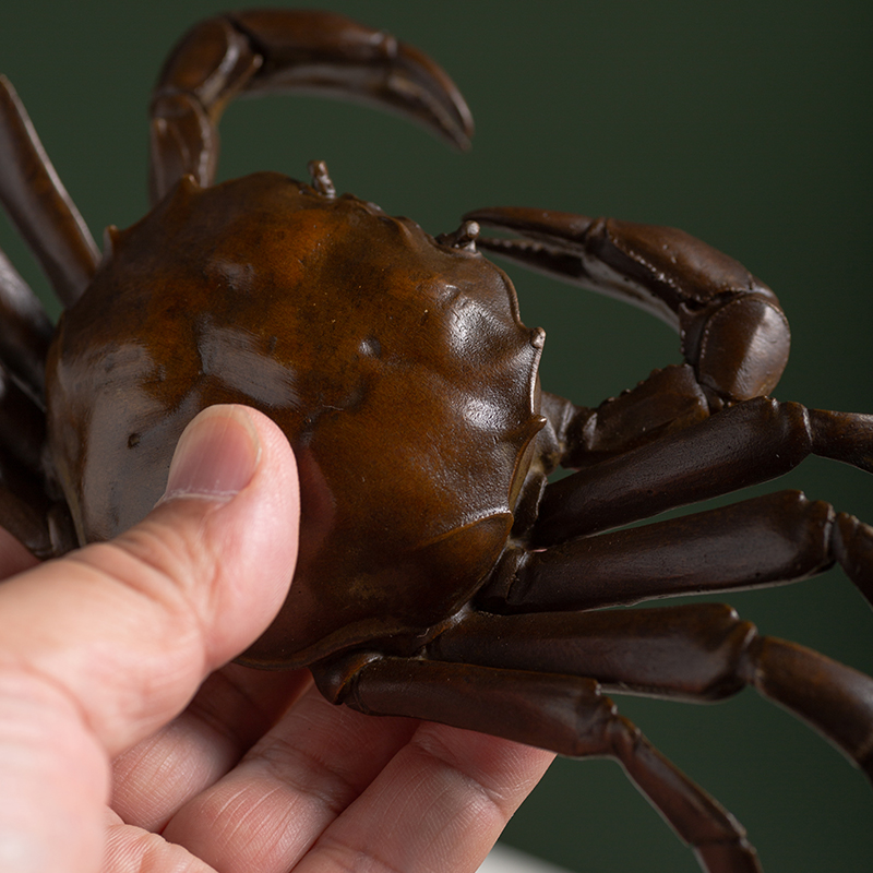 铜螃蟹摆件横财将军茶盘用茶宠茶道盖置家居铜工艺品八方来财摆设