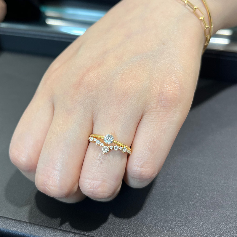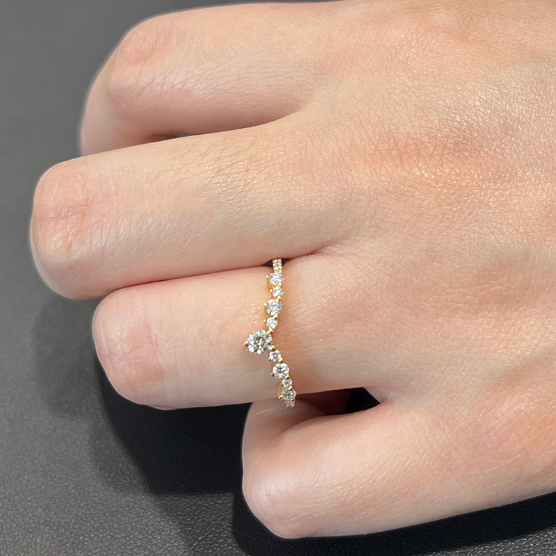 日本代购Marisol 时尚V型排钻戒指女18K金百搭天然真钻石叠带钻戒