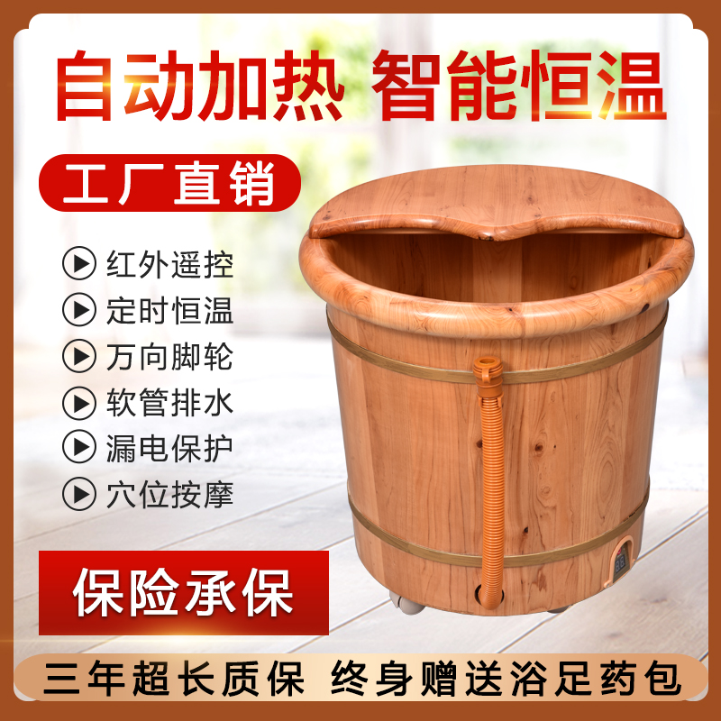 泡脚桶全自动加热洗脚盆家用木质足浴桶恒温泡脚盆过小腿洗脚木桶